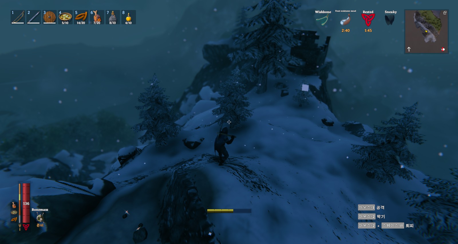 그리고 모은 재료를 보니 4세트가 충분히 나와서 옷과 망토를 만들었는데 냉기 저항 포션을 마시지 않아도 전혀 대미지가 없습니다. 냉기 저항 포션 한 60개 넘게 남았는데 쓸모가 없겠네요. 설산에서 죽으면 시체 찾으러갈때 써야 되네요.