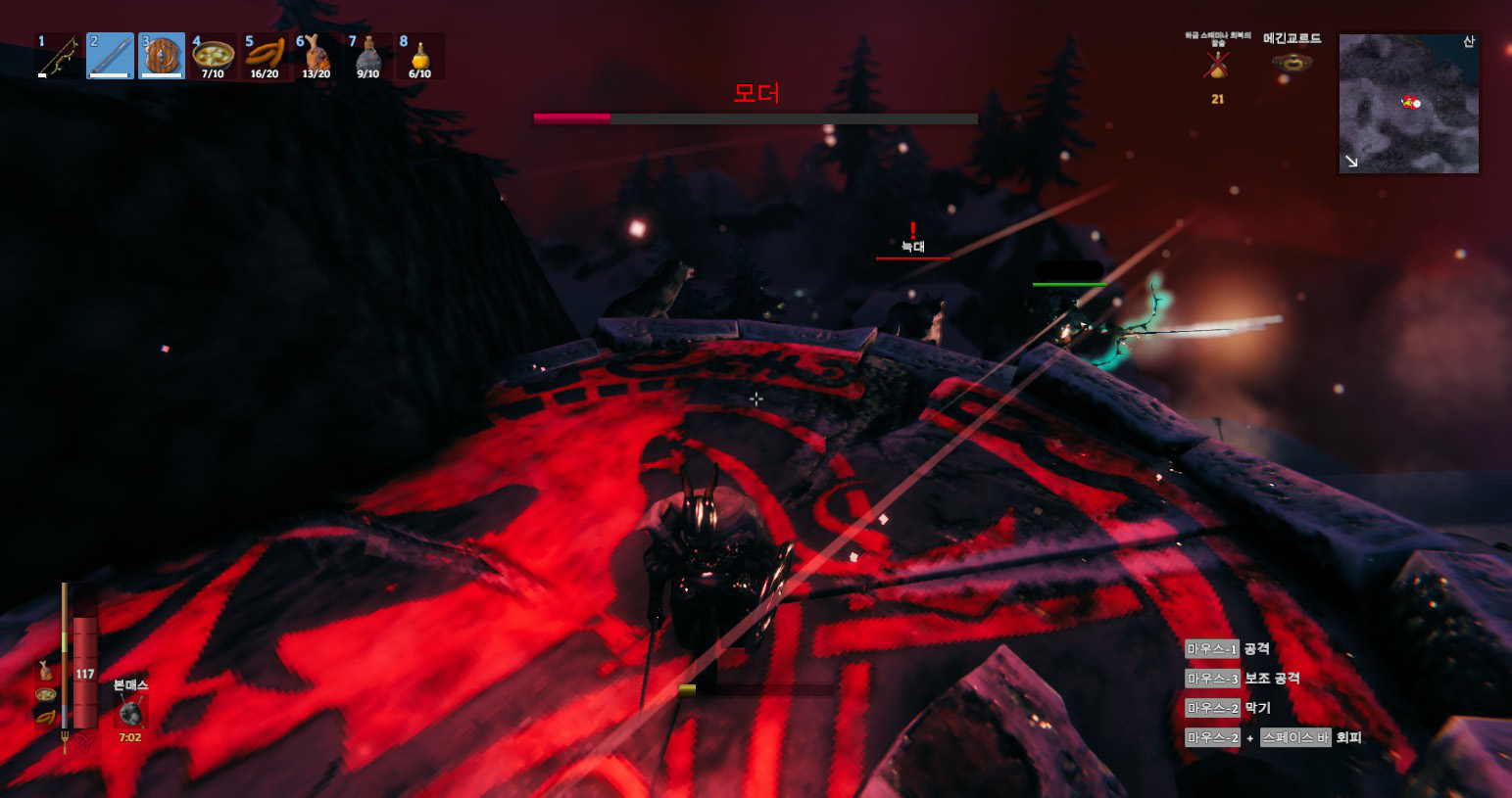 혼자 남았는데 보스는 잡을만합니다. 그런데 주변에서 늑대랑 드레이크가 날아와서 혼자 다 신경 쓰려니 그게 좀 힘들었어요.