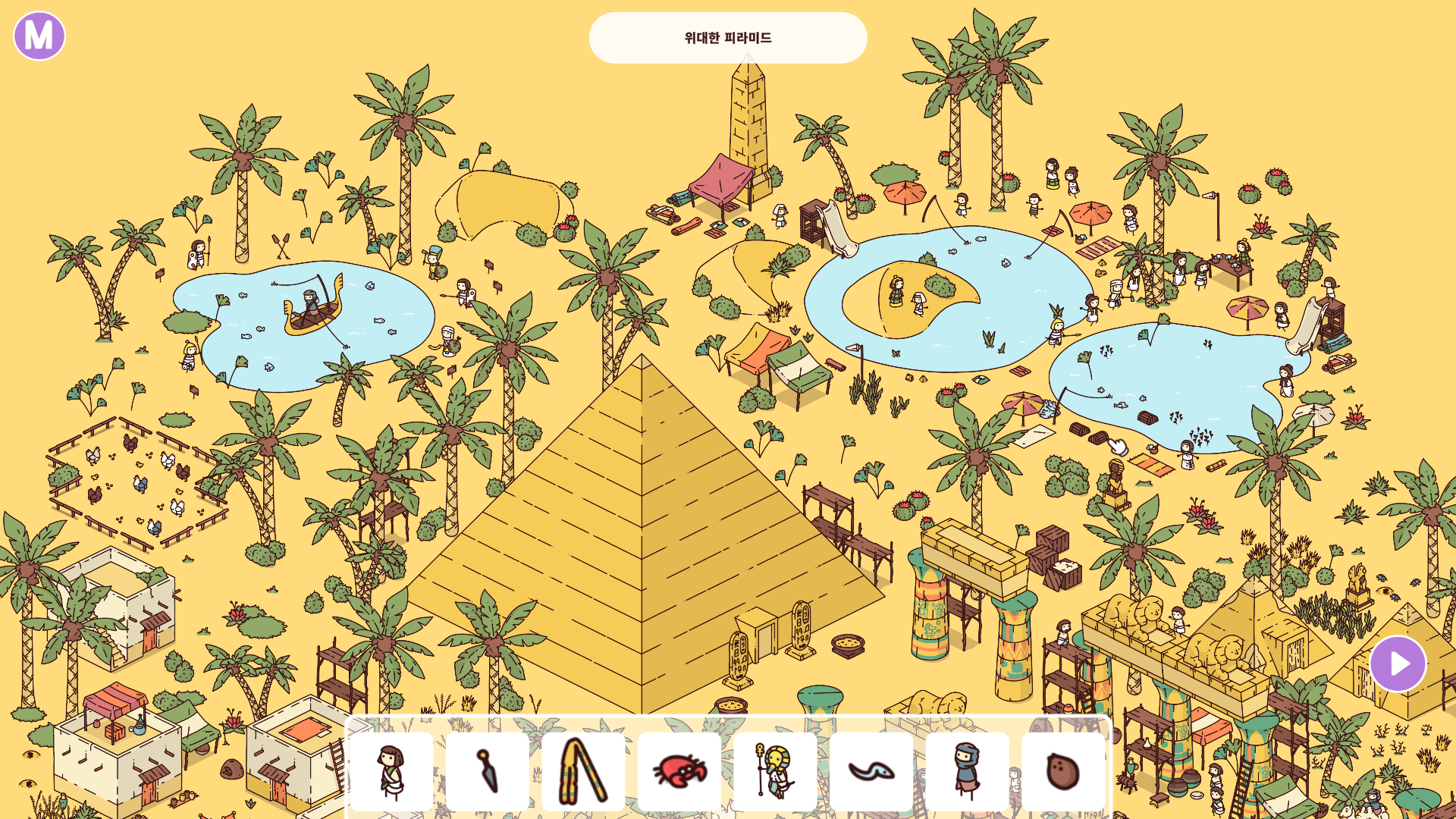 그리고 물품을 찾는 게 무조건 찾는 게 아니라 마우스를 올려보면 위치에 대한 힌트가 나옵니다. 예를 들면 '따뜻하고 높은 곳을 좋아해'라는 힌트가 나오면 열대 나무 위에 있다던가 하는 방식이에요.
