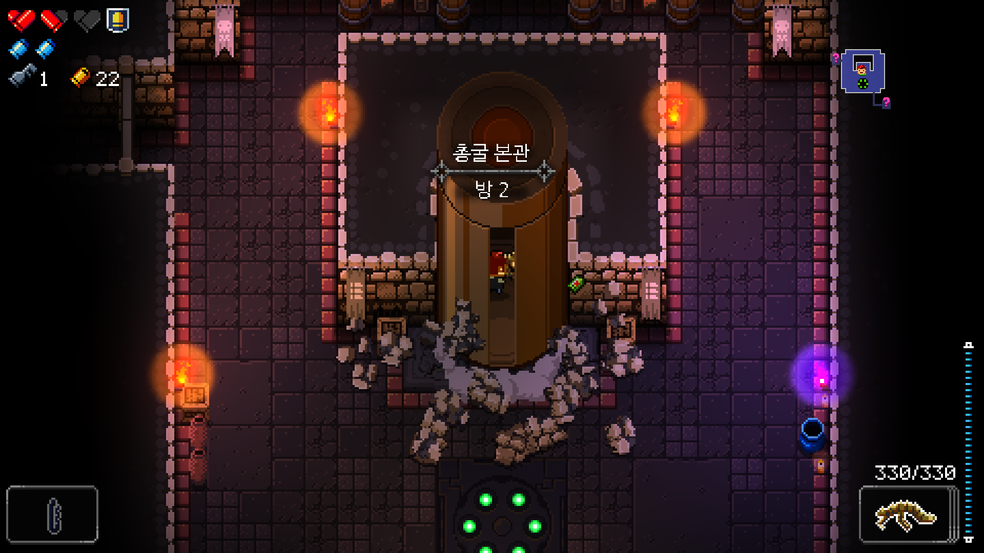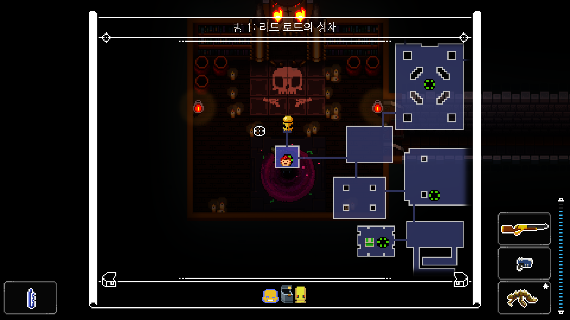 블레이징 빅스랑 계속 비교를 하게 되는데 확실히 피통이 6칸이다 보니 보스까지 훨씬 쉽게 잡았어요. 공포탄의 경우 다음 층으로 가면 보충이 돼서 위험할 땐 쓰는 게 좋았는데, 익숙하지 않아서 구르기만 쓰게 되고 손이 잘 안 가네요.