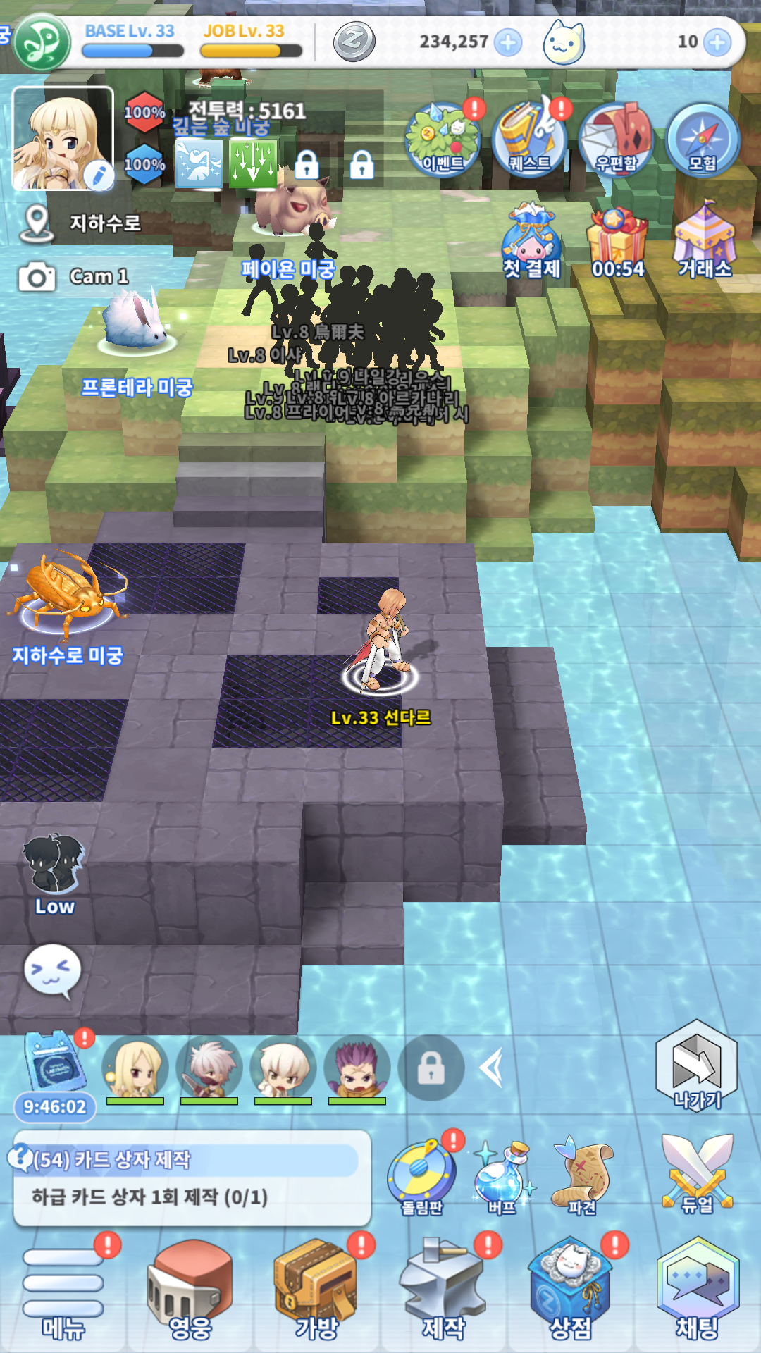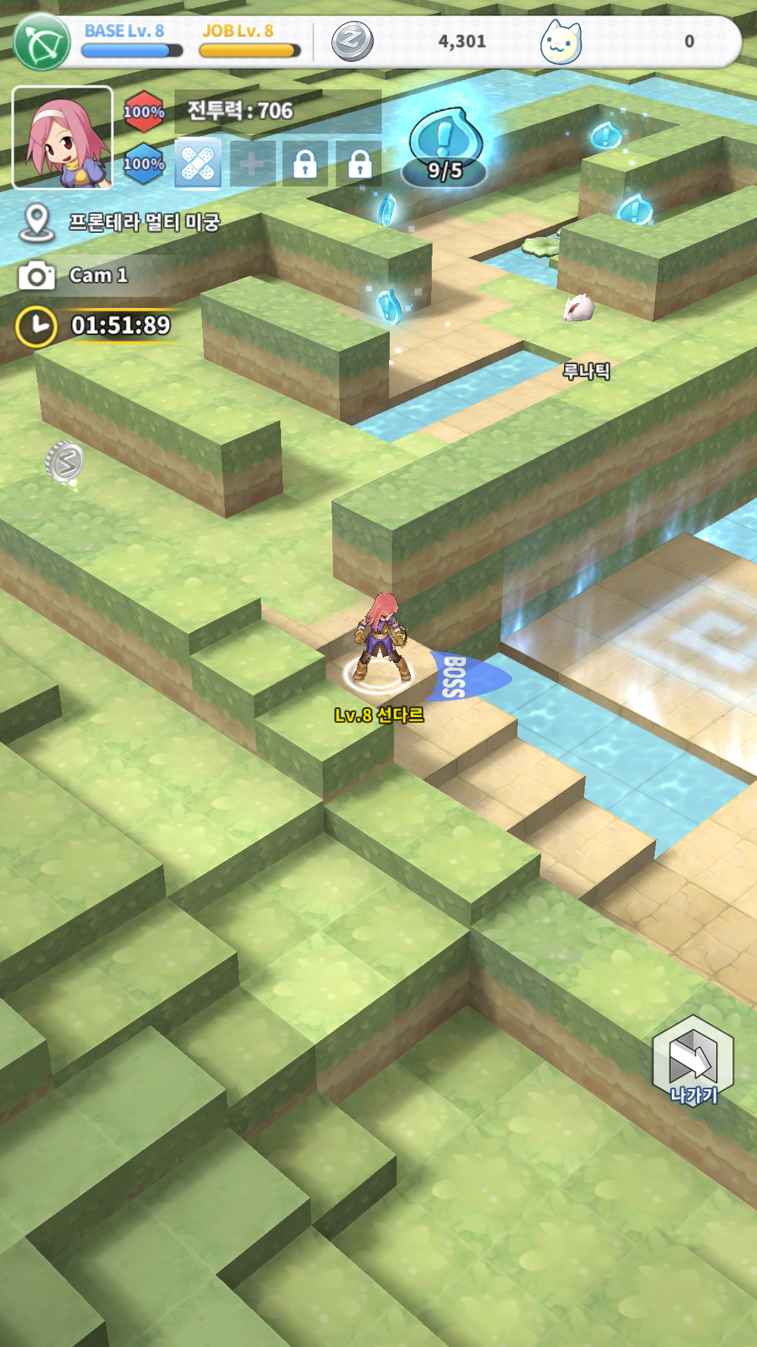또, 장비에 장착하는 카드를 얻을 수 있는 미궁 컨텐츠도 있는데 맵을 대각선 이동으로 만들어놔서 조작이 불편하네요.