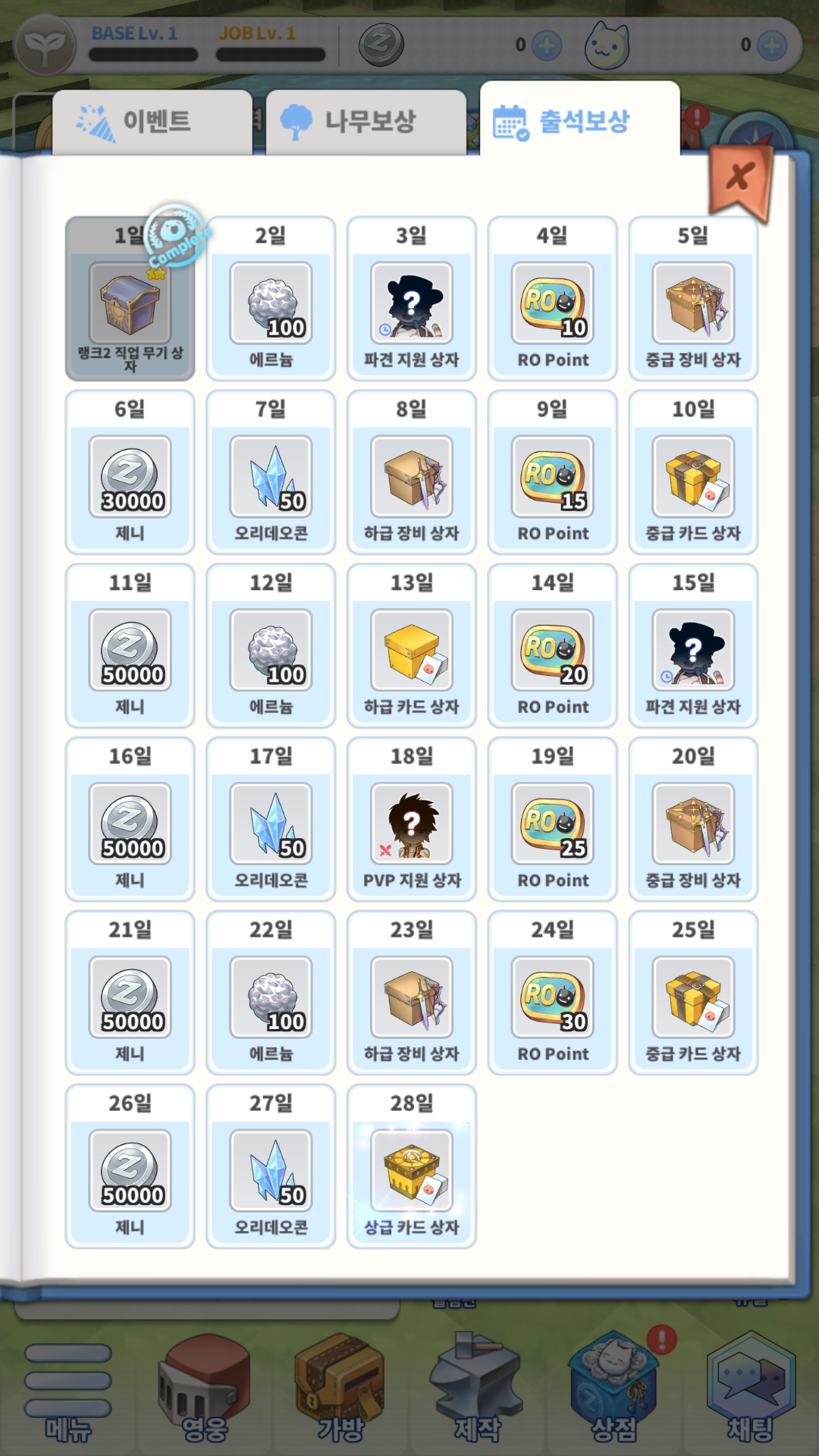 출석 보상입니다.