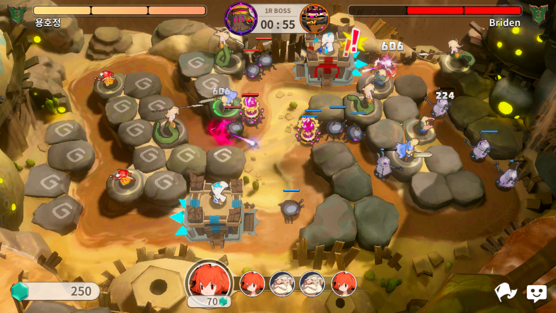 상대분의 첫 번째 유닛이 이속을 20% 감소시키고, 세 번째 유닛이 스턴을 먹이는데 이렇게 딜러와 서포터 느낌의 조합으로도 높이 올라갈 수 있네요. 다만, 서포터 조합의 경우 서포터 조합끼리 만나면 높이 올라갈 수 없기 때문에 딜 조합을 꾸리시는게 좋아요.