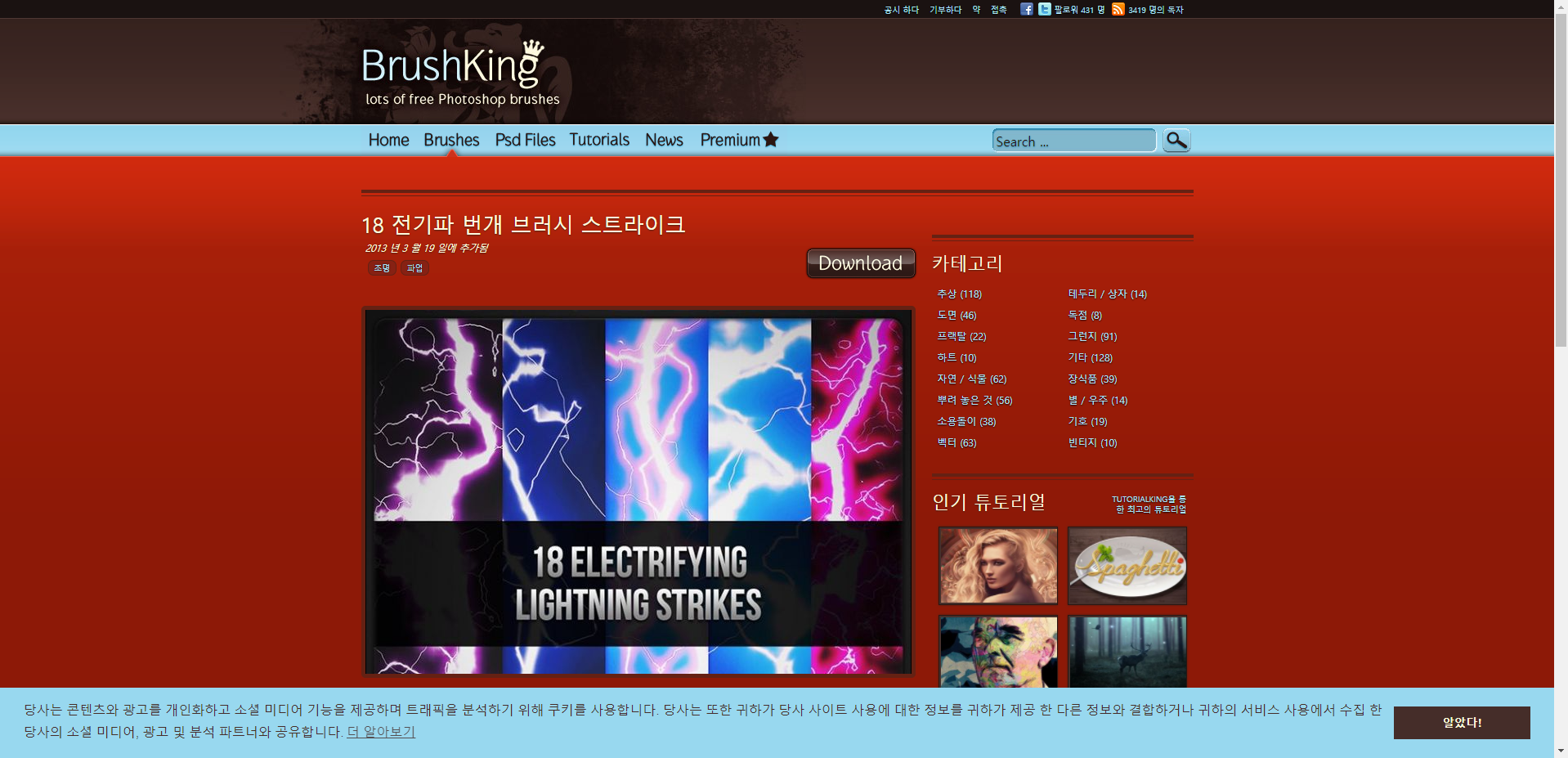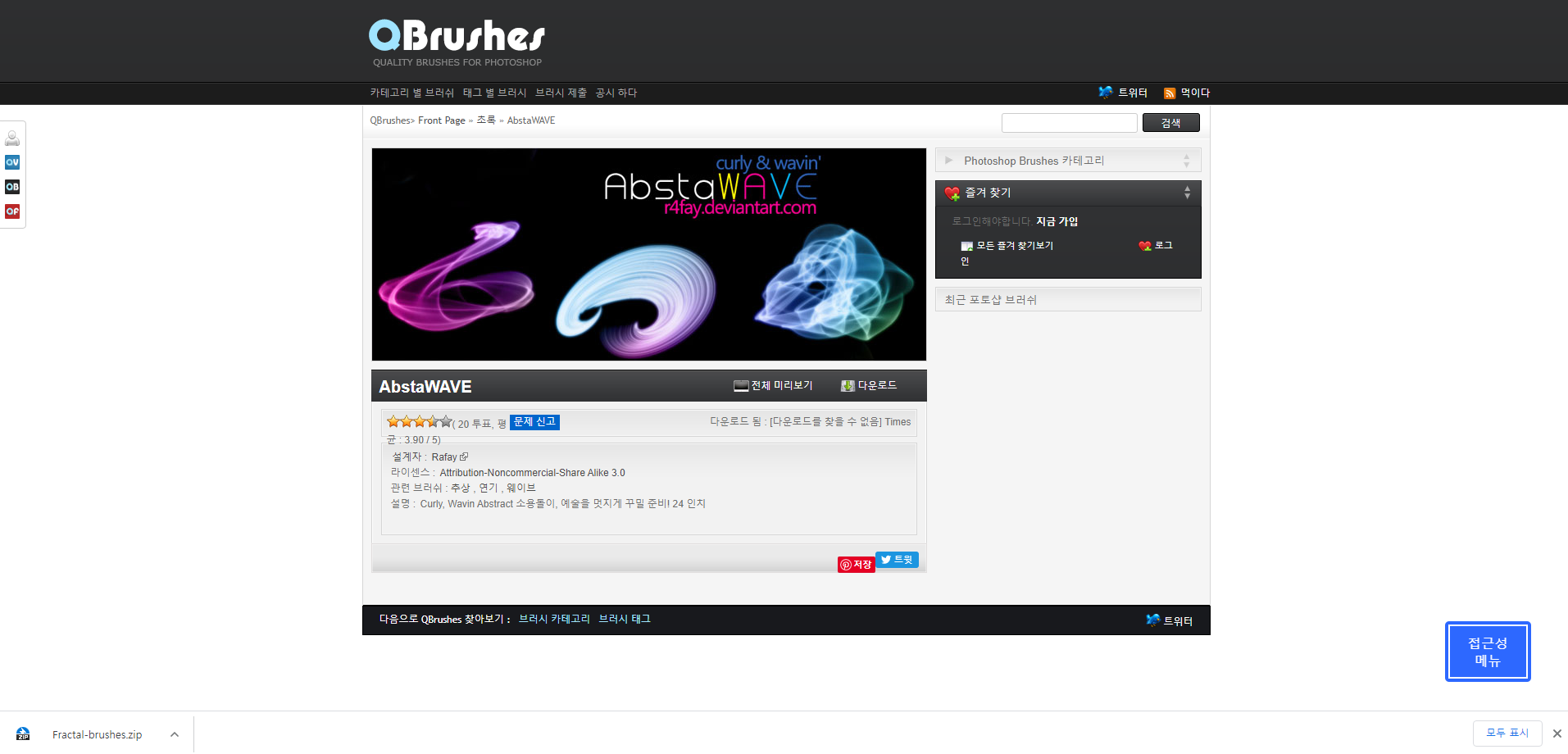 일단 대충 무료 브러시 사이트를 검색하여 원하는 브러시를 다운받아주세요. 다만 라이선스를 잘 보셔야 하는데, 라이선스에 따라 사용 범위가 달라지기 때문에 많은 사이트 중 라이선스가 별도로 표기되어 있지 않은 사이트는 별로 추천드리지 않습니다.