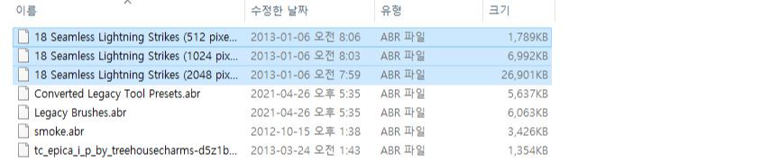 이렇게 파일을 폴더에 넣어두면 자동으로 브러시를 인식할 것 같지만, 브러시를 포토샵에서 추가하기 위해서는 별도의 작업을 해주어야 합니다.