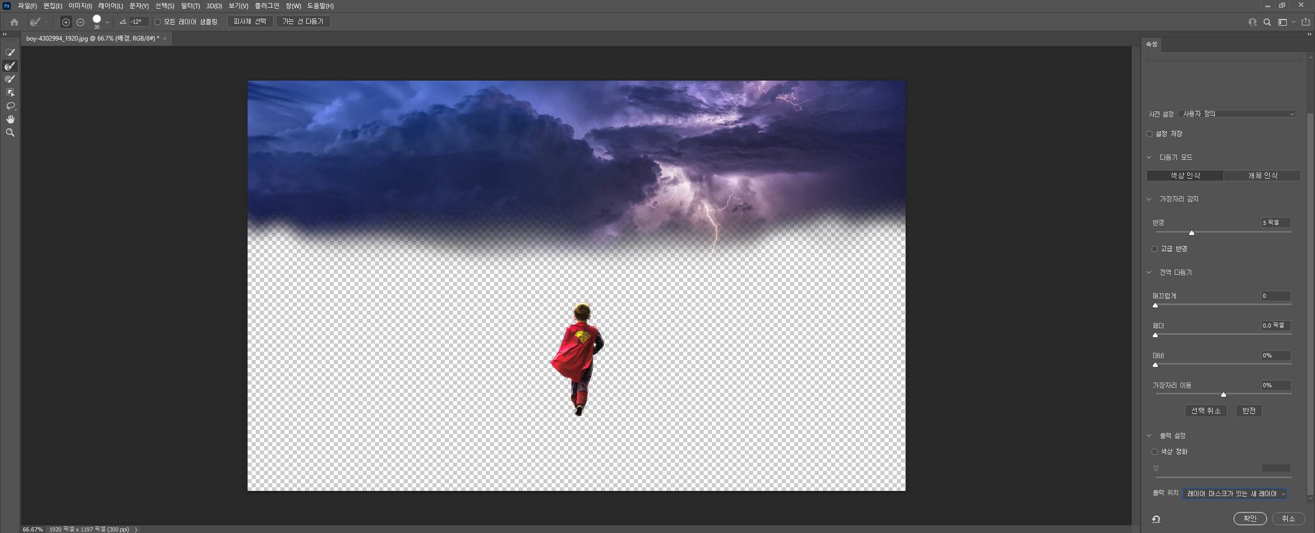 저는 아이만 따로 분리를 했는데, 경계선을 다듬어서 자연스럽게 만들어주세요.