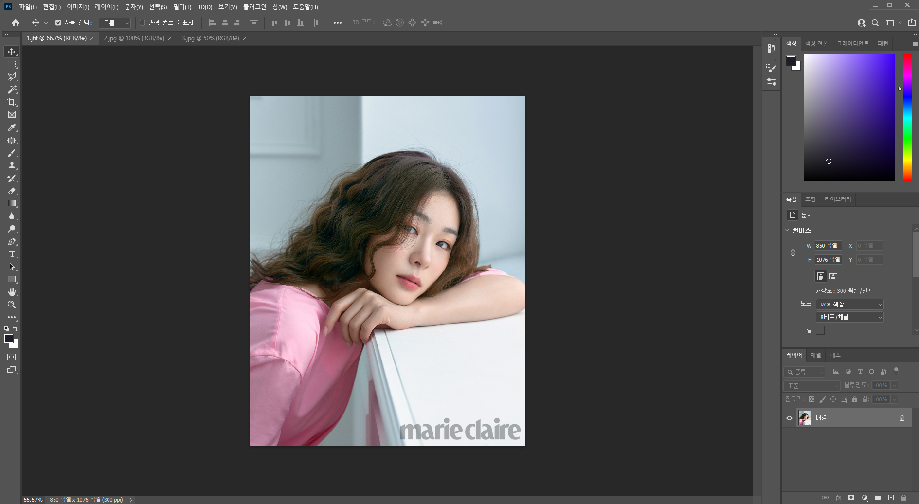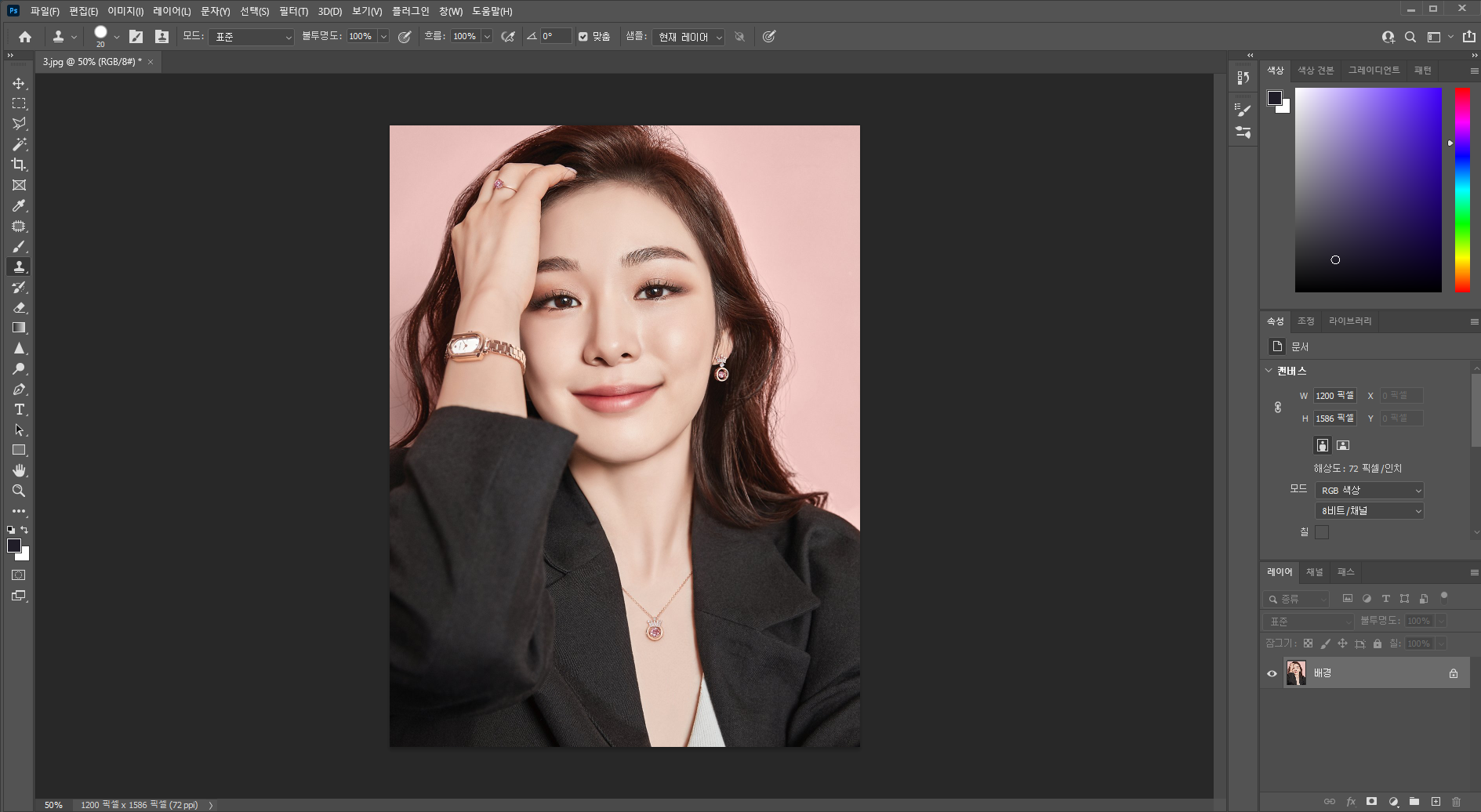 작업은 확대해서 하시되, 한 번씩 축소해서 전체적으로 이미지를 확인해야 합니다. 가까이서는 괜찮았다고 생각했는데 축소해서 보면 색이 이상한 경우가 있어요.