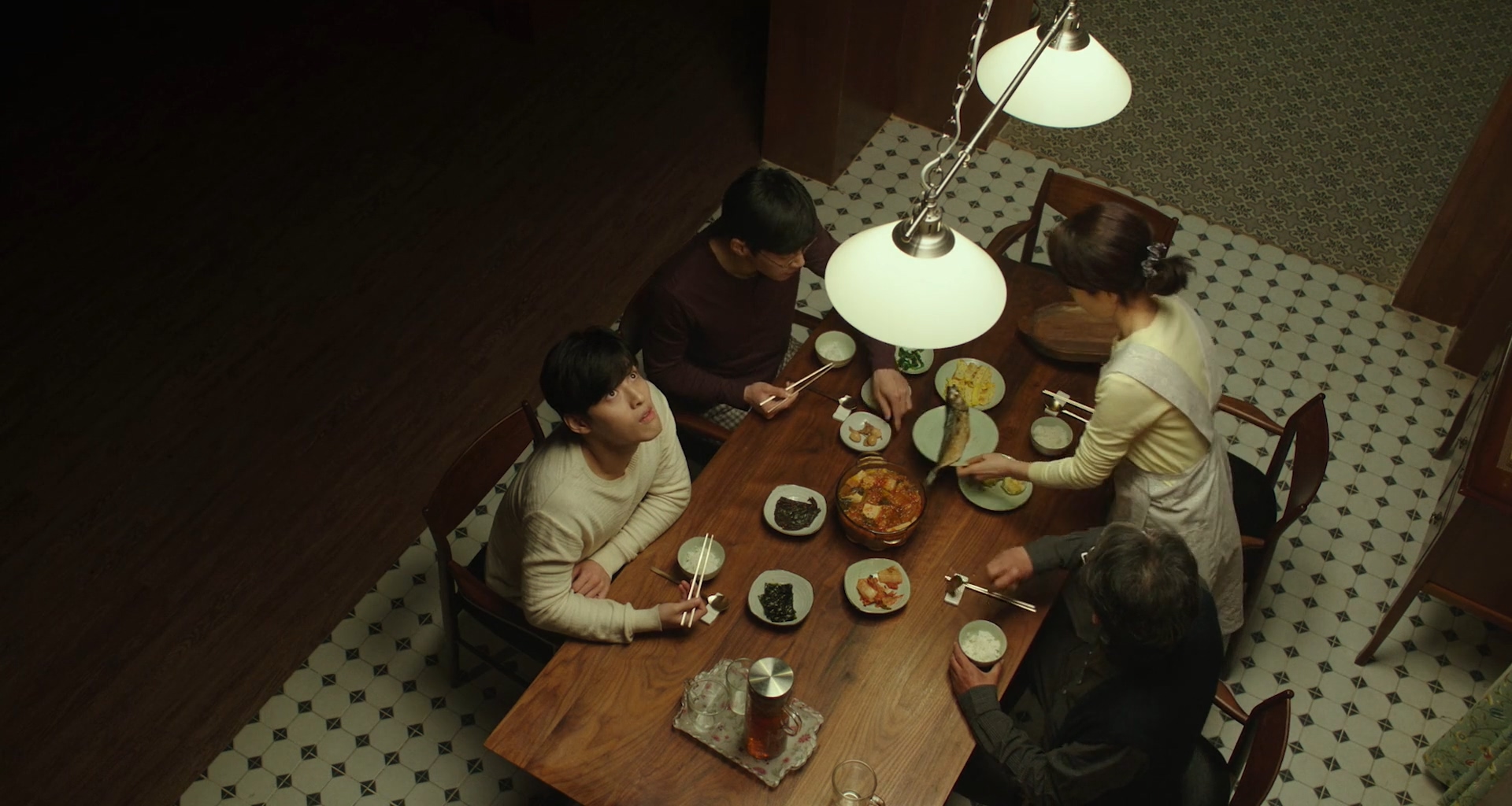 짐 정리를 마치고 저녁 식사 중인 가족들. 그런데 위에서 쿵 하는 소리가 들리고 진석은 가족들에게 소리를 못 들었냐 묻지만 가족들은 천둥소리라며 만성 신경쇠약을 앓고 있는 진석이 잘 못 들은 거라 말합니다.