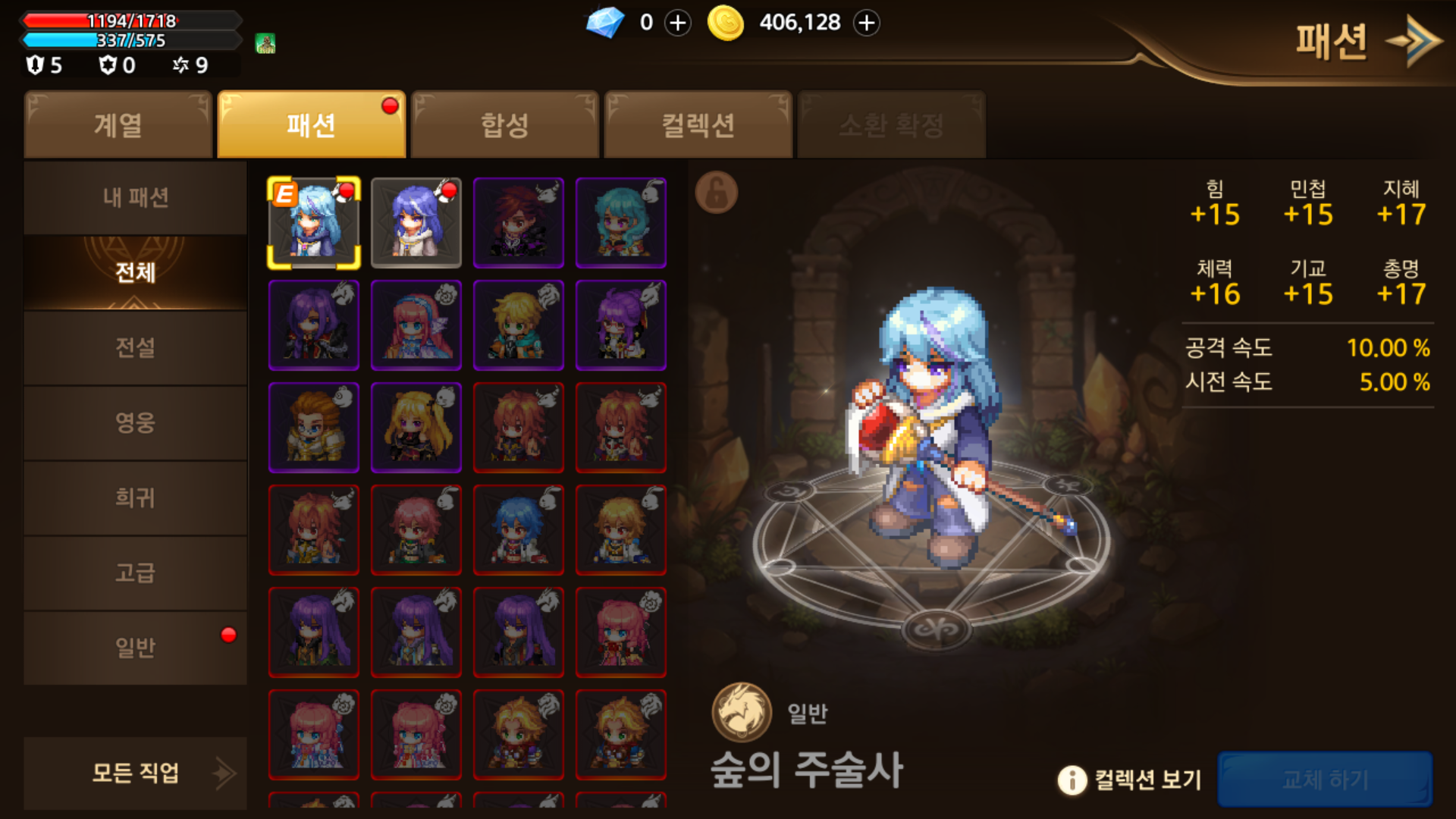마찬가지로 패션도 컬렉션을 수집하여 추가 스텟 효과가 있나본데 사실 여기서 이미 정은 떨어질 대로 떨어져서 바로 게임 삭제를 해도 상관없었지만 어차피 끄고 나면 더 안 할 게임으로 보여서 조금만 더 진행해봤습니다.
