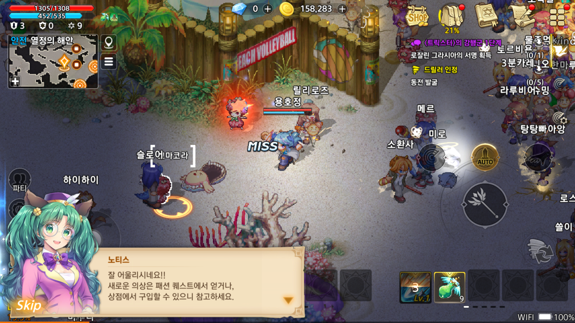 게임을 자동으로 돌리면서 느낀 건데 사냥할 때 미스가 상당히 많이 뜹니다. 미스만 안 떠도 속도가 배는 빨라지겠다는 생각이 들 정도로 미스가 많이 떴어요.