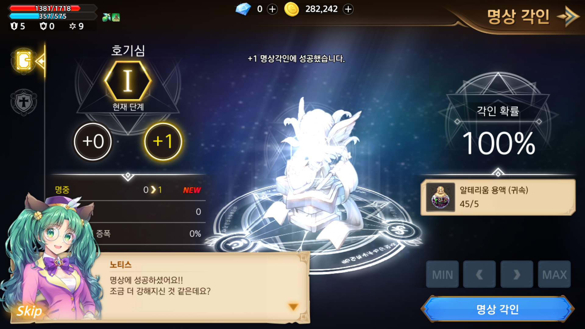 확률에 따라 강화가 되고, 강화 수치에 따라 능력치를 일정 비율로 증가시켜줍니다. 여기까지 해보니 역시 귀여운 리니지 답다는 생각이 들었는데 도대체 게임에 스텟 상승 요소가 몇 개인지 모르겠어요.