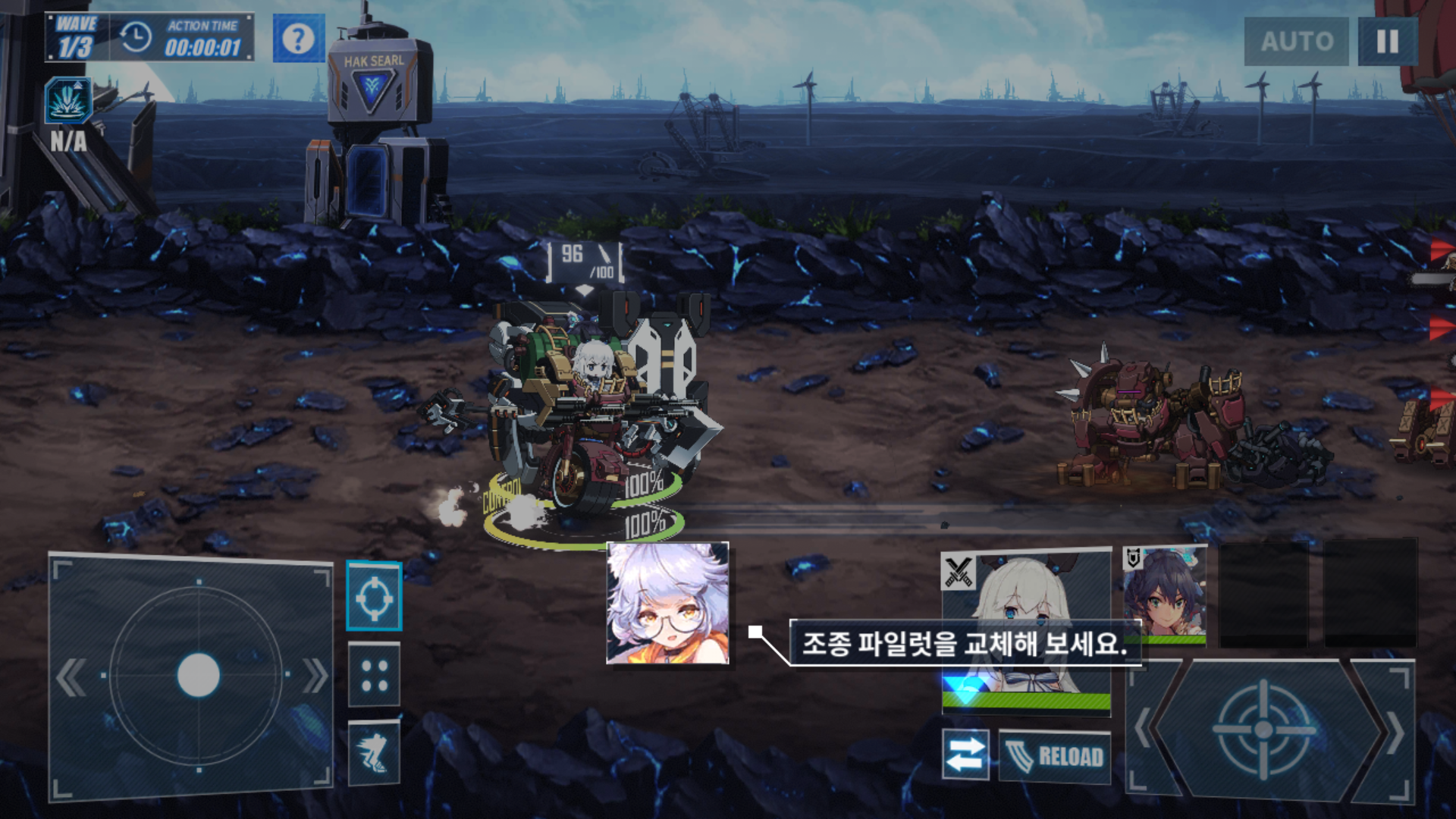 튜토리얼에서 다른 캐릭터도 조작이 가능한데, 이전 캐릭터는 원거리였다면 이 캐릭터는 근거리로 각 캐릭터마다 외형뿐만 아니라 공격도 특징이 있네요.