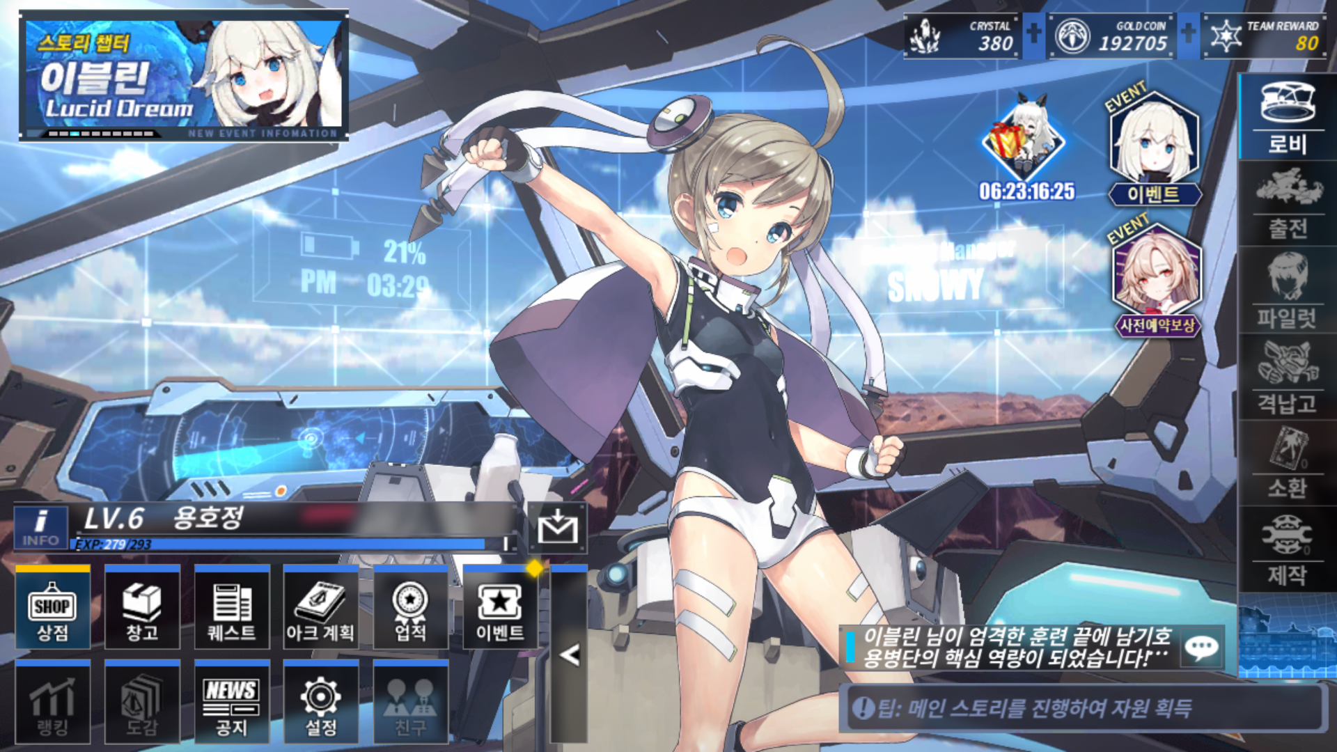 게임을 진행하다 보니 SR 등급의 장비를 주는데 이게 기본 캐릭터의 전용 장비입니다.