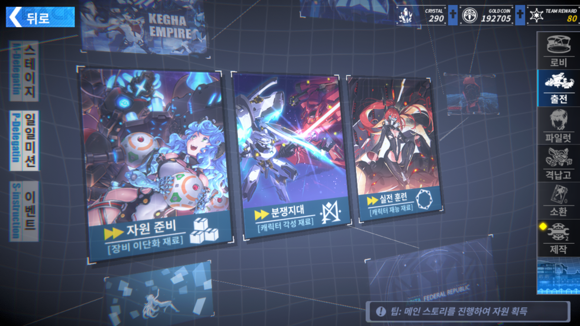 일일 미션에서는 장비 이단화 재료와 캐릭터 각성 및 재능 재료를 얻을 수 있는데 강화 요소가 꽤 있어 보이네요.