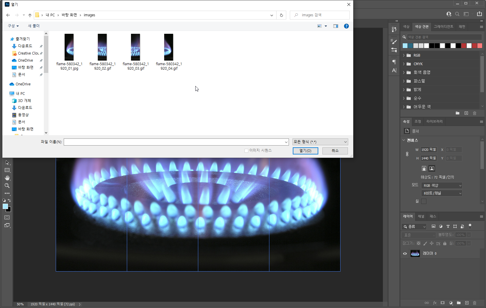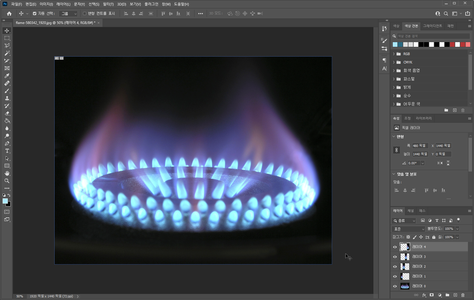 사진을 보면 하나의 사진으로 보이지만, 레이어를 보면 4개로 분할되어 있습니다.