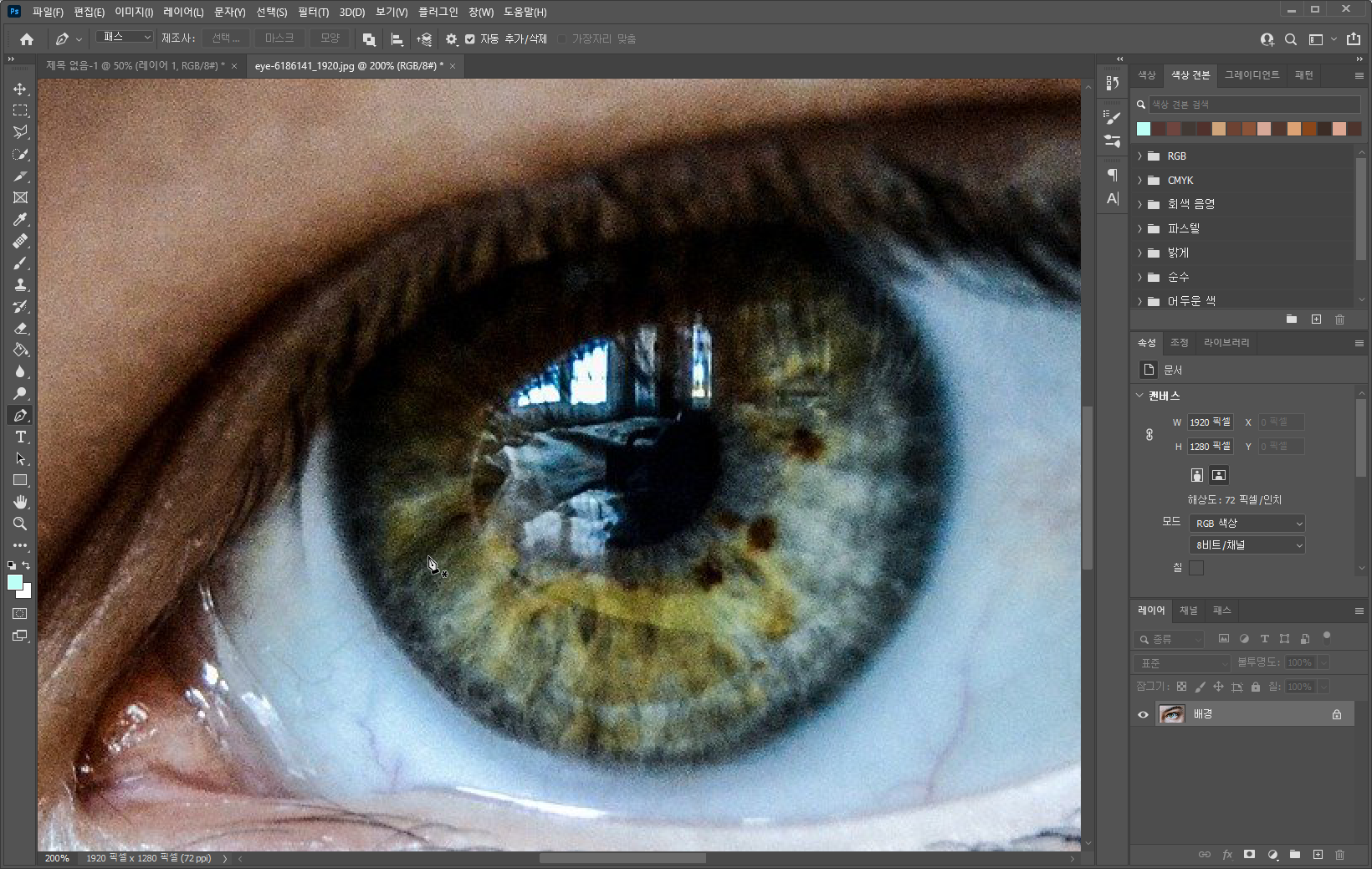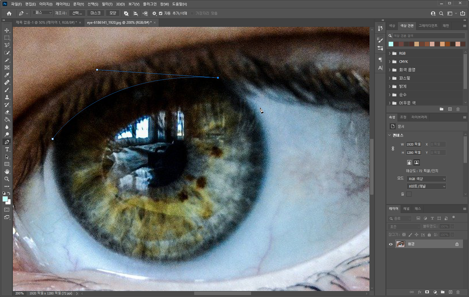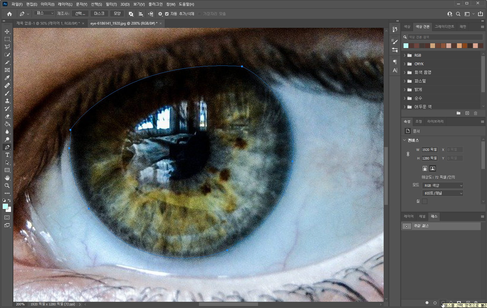 우선 사진을 하나 불러왔는데 물론 이렇게 쉬운 형태는 굳이 펜 툴로 할 필요는 없지만 어려운 걸 하기엔 손이 많이 가서 저도 귀찮으니 간단한 사진으로 눈동자를 따보겠습니다.