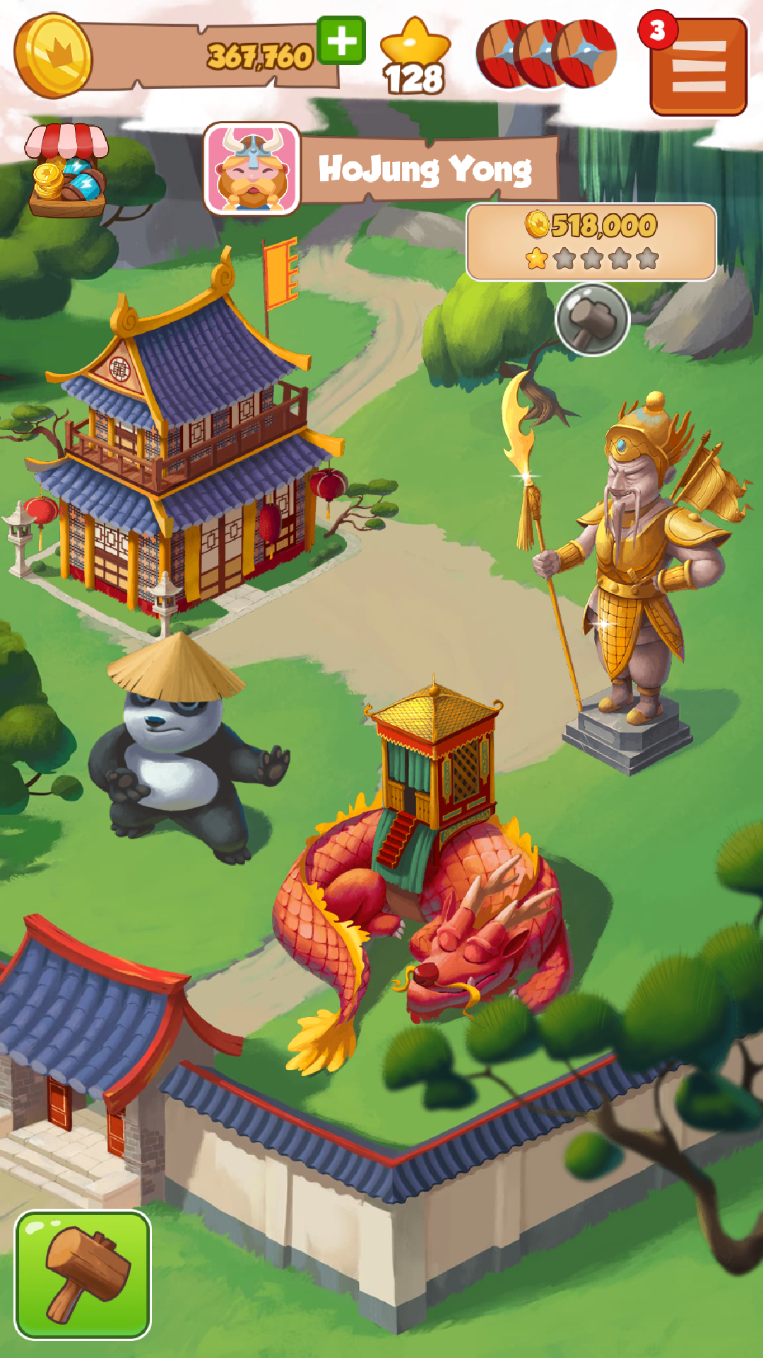 직접 플레이하기 전에 영상만 볼 때는 이 게임이 왜 인기가 있을까 의문이었는데 막상 해보니 나름 재미가 있습니다. 게임 자체가 직관적이라 공략도 필요 없고 그저 슬롯머신을 돌리고 모은 돈으로 마을을 업그레이드하면 됩니다. 마을을 꾸미는 재미와 상대의 돈을 훔치는 재미도 있고 라이트 하게 즐기기에 딱 좋은 게임이네요. 스테이지가 넘어갈수록 펫도 나오고 수집하는 카드도 생기고 길드같은 것도 생기지만 이 게임의 유일한 목표라고 볼 수 있는 마을 꾸미기는 '마을 꾸며서 뭐 할 건데?'라는 의문이 남습니다. 뭐 마을 꾸미는 게임이 많지만 기본적으로 퍼즐을 통해 재화를 얻는다던가 그 얻는 방식에서 재미가 있는데 이 게임은 슬롯머신으로 돈을 모아서 마을 꾸미고 다음 마을로 넘어가고 그게 전부네요. 할만하다고 생각하면 할만하지만 국내 스토어에는 없기 때문에 해외 apk파일을 구해서 플레이를 해야 하는게 단점입니다.