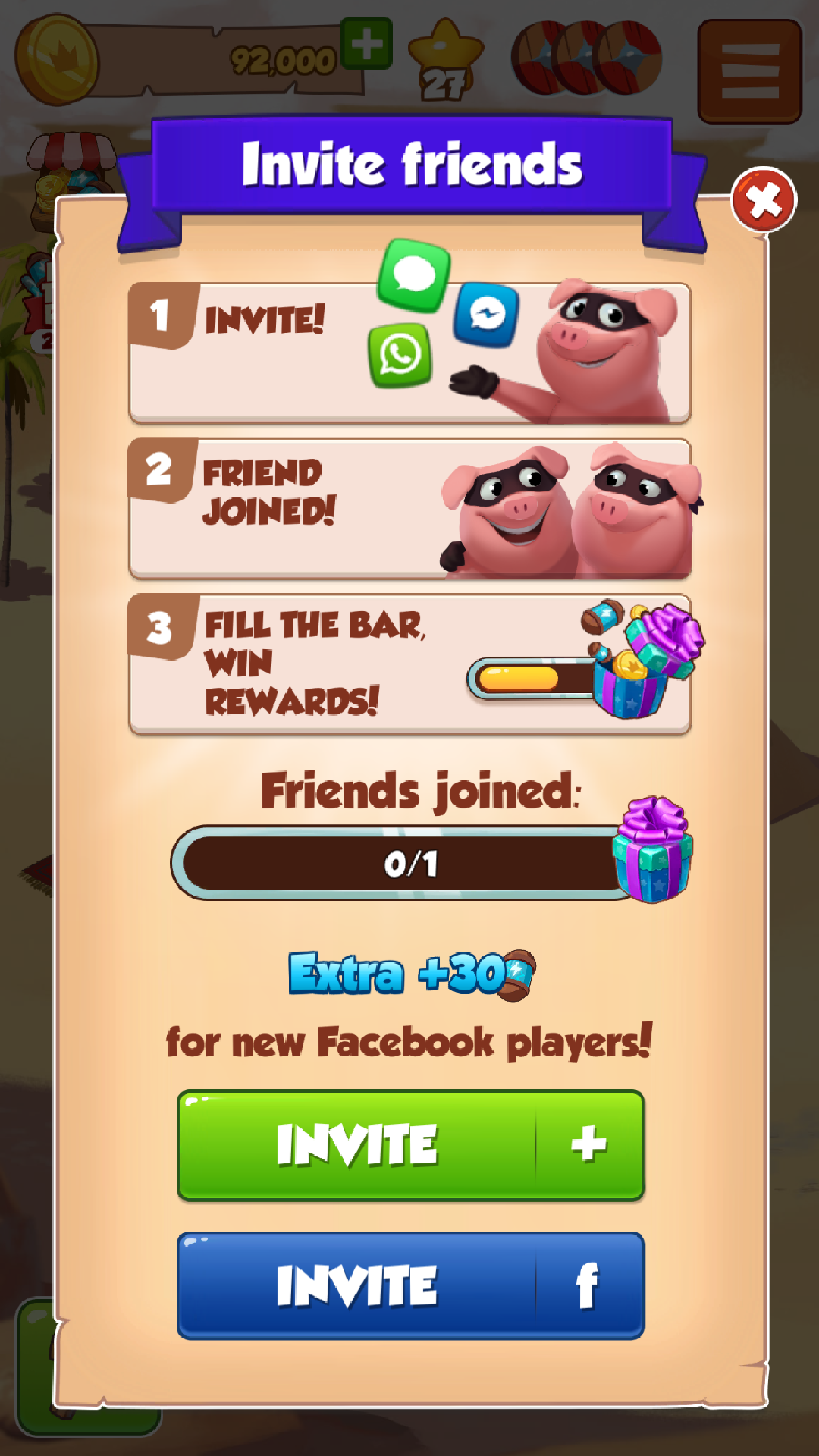 이 게임은 게스트 계정으로 플레이도 가능하고, 페이스북 계정으로 연동해서 플레이도 가능한데 친구를 초대하면 보상을 줍니다. 기본 보상이 50만 원에 스핀 50갠가 주고 30개를 추가로 주는데 지금 1번 그림을 보니 다른 계정도 있는 것 같습니다.