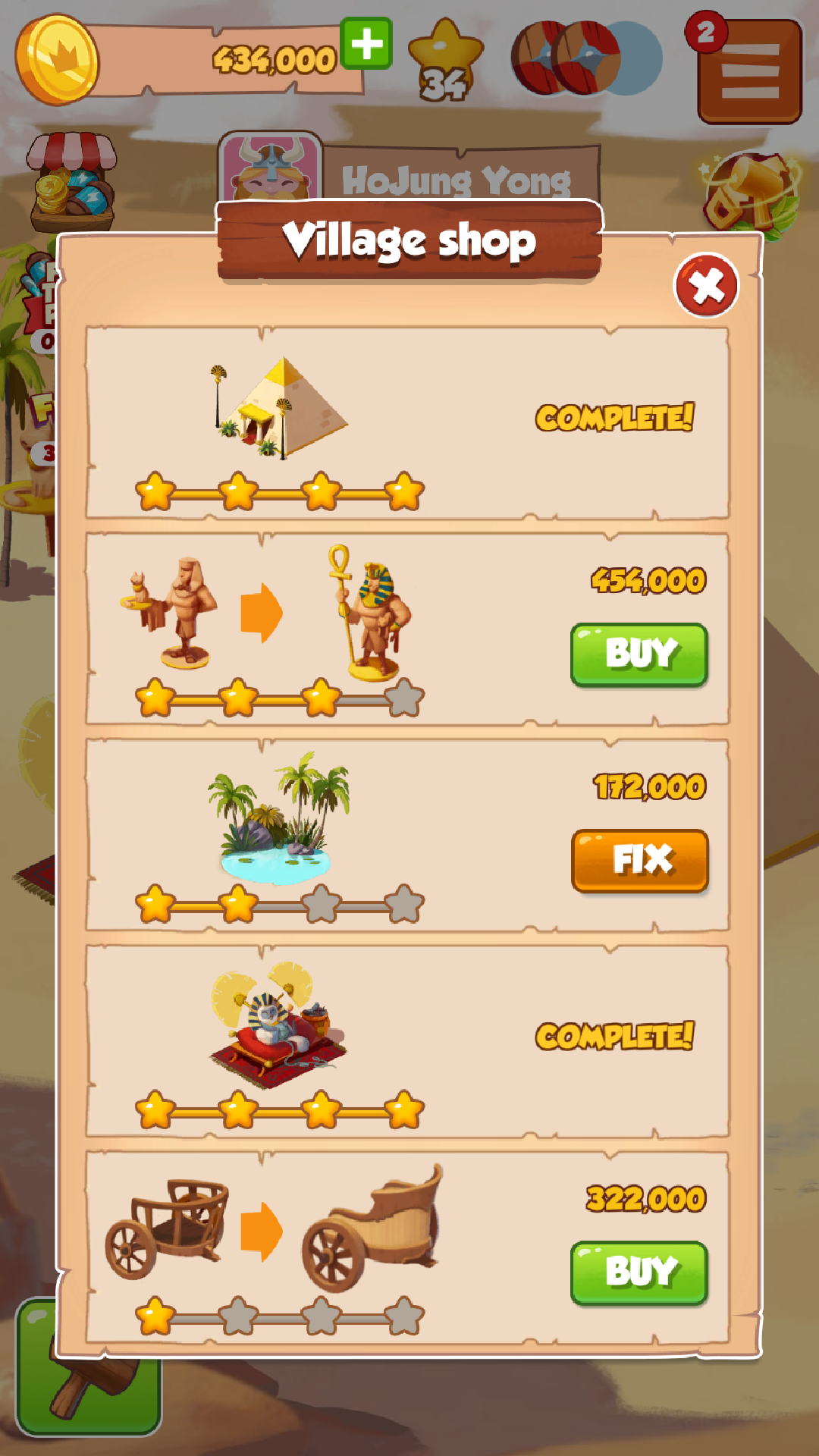 모은 골드는 마을을 업그레이드 할 수 있고, 별을 모두 모으면 다음 마을로 간다고 해서 하나하나 업그레이드를 해봤습니다.