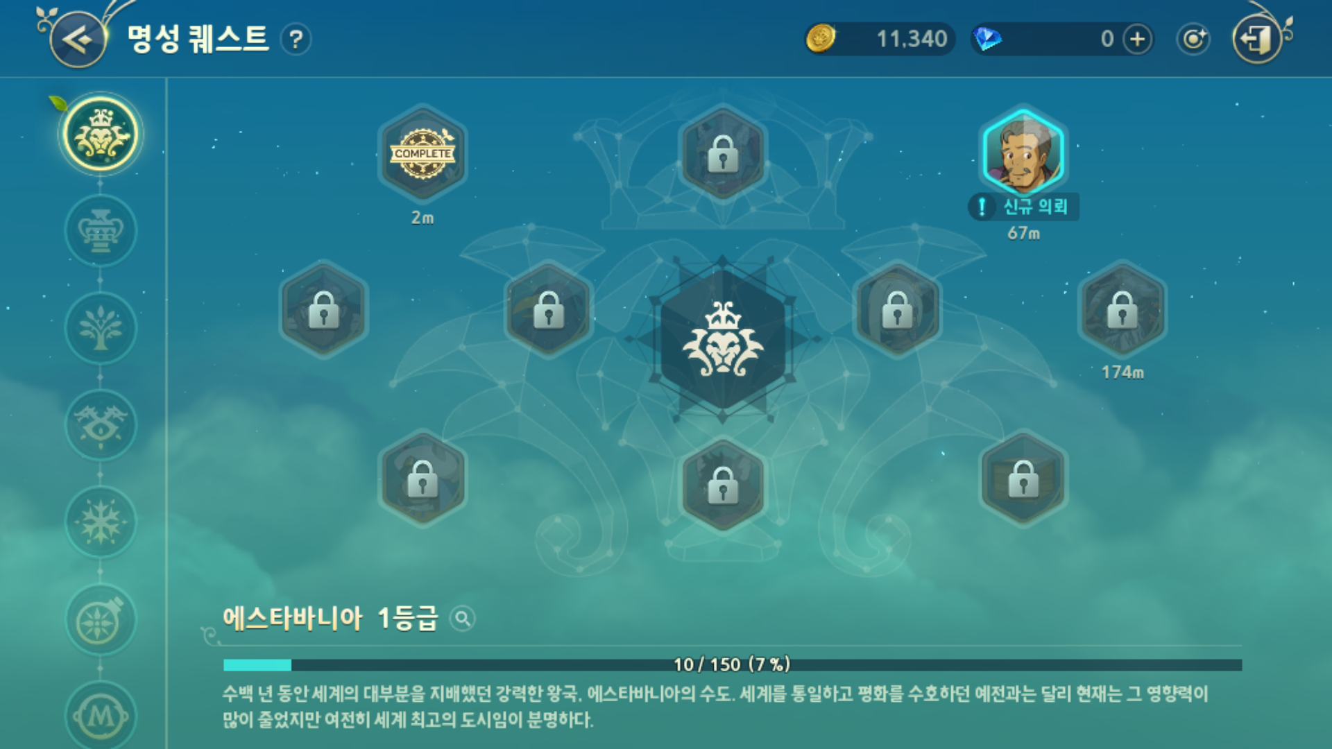 명성 퀘스트라는 것도 있는데 클리어해서 등급을 올려야 다음 퀘스트가 진행 가능하기 때문에 되는대로 해주시는 게 좋습니다. 퀘스트 진행 시 순간이동 기능을 지원하기 때문에 몰아서 해도 되긴 합니다.