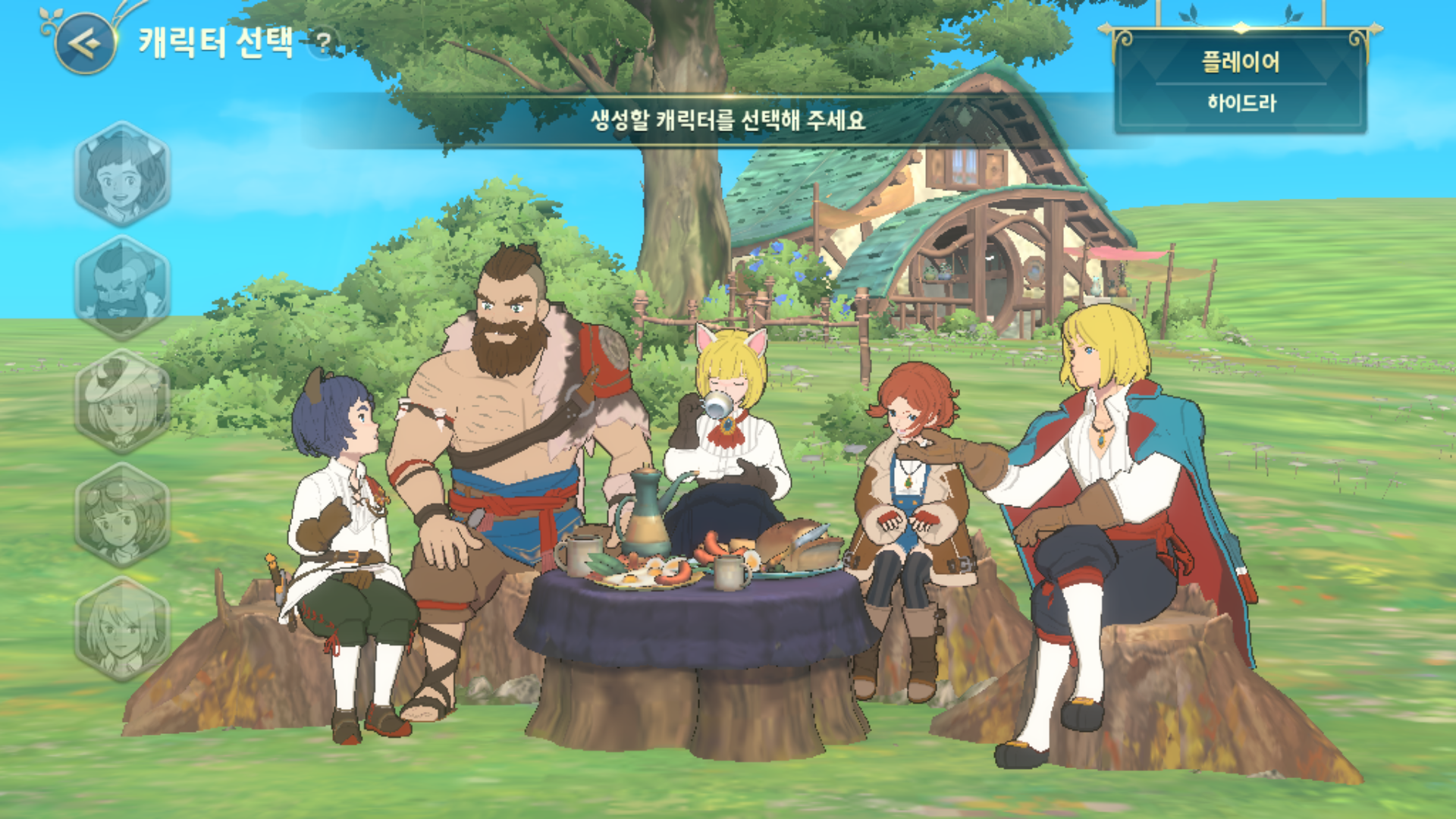 캐릭터는 5개가 있는데 저는 제일 왼쪽에 로그를 골랐습니다. 저 포함 5명이서 하기 때문에 안 겹치게 골랐는데 로그는 궁수네요.