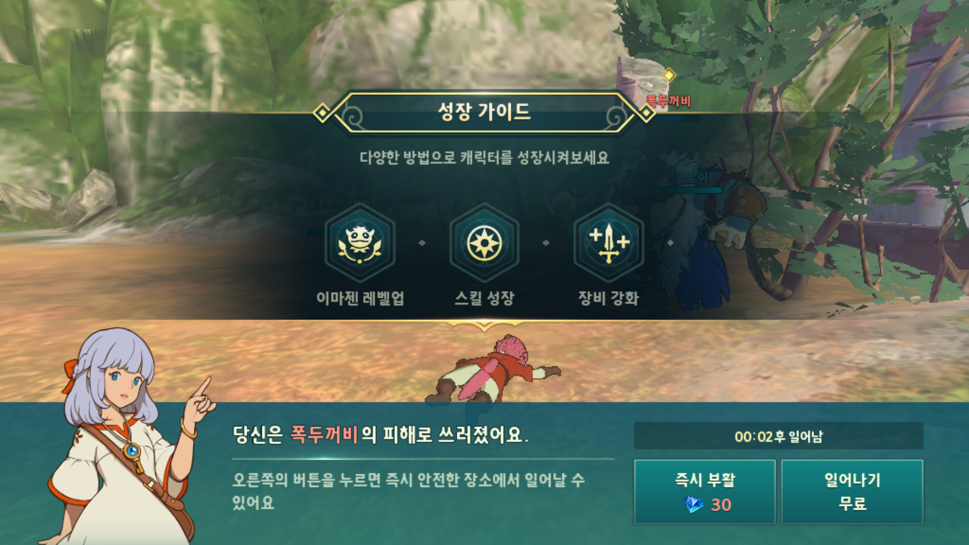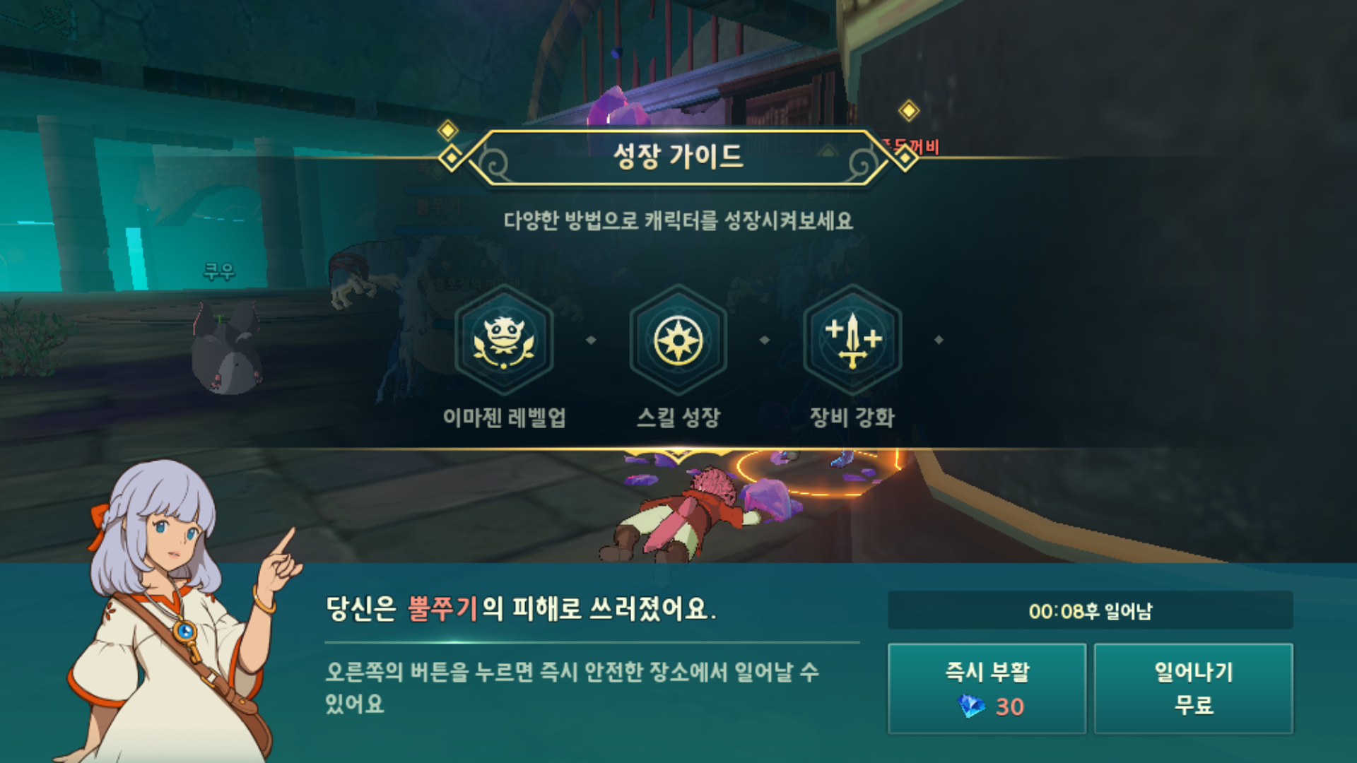 그런데 게임을 오토로 진행하다 보니 죽어있어서 보니까 컨트롤 없이는 못 잡는 구간이 발생합니다. 로그가 몸이 약한데 전투 ai가 말뚝 딜을 해서 그런가 봐요.