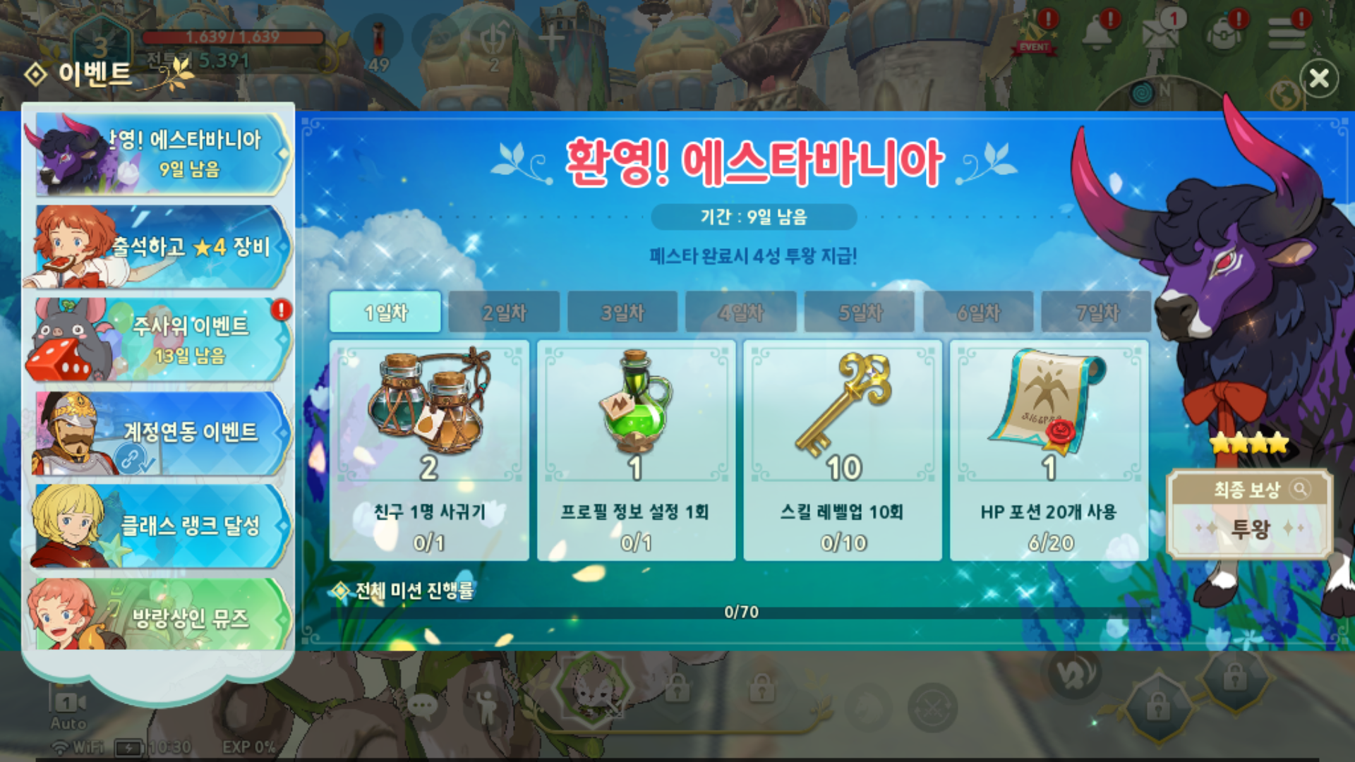 콘텐츠는 메인 퀘스트와 명성 퀘스트 외에 현상금 수배라던지 요일별로 플레이 가능한 던전도 있고 그 외에도 여러 가지가 있습니다.