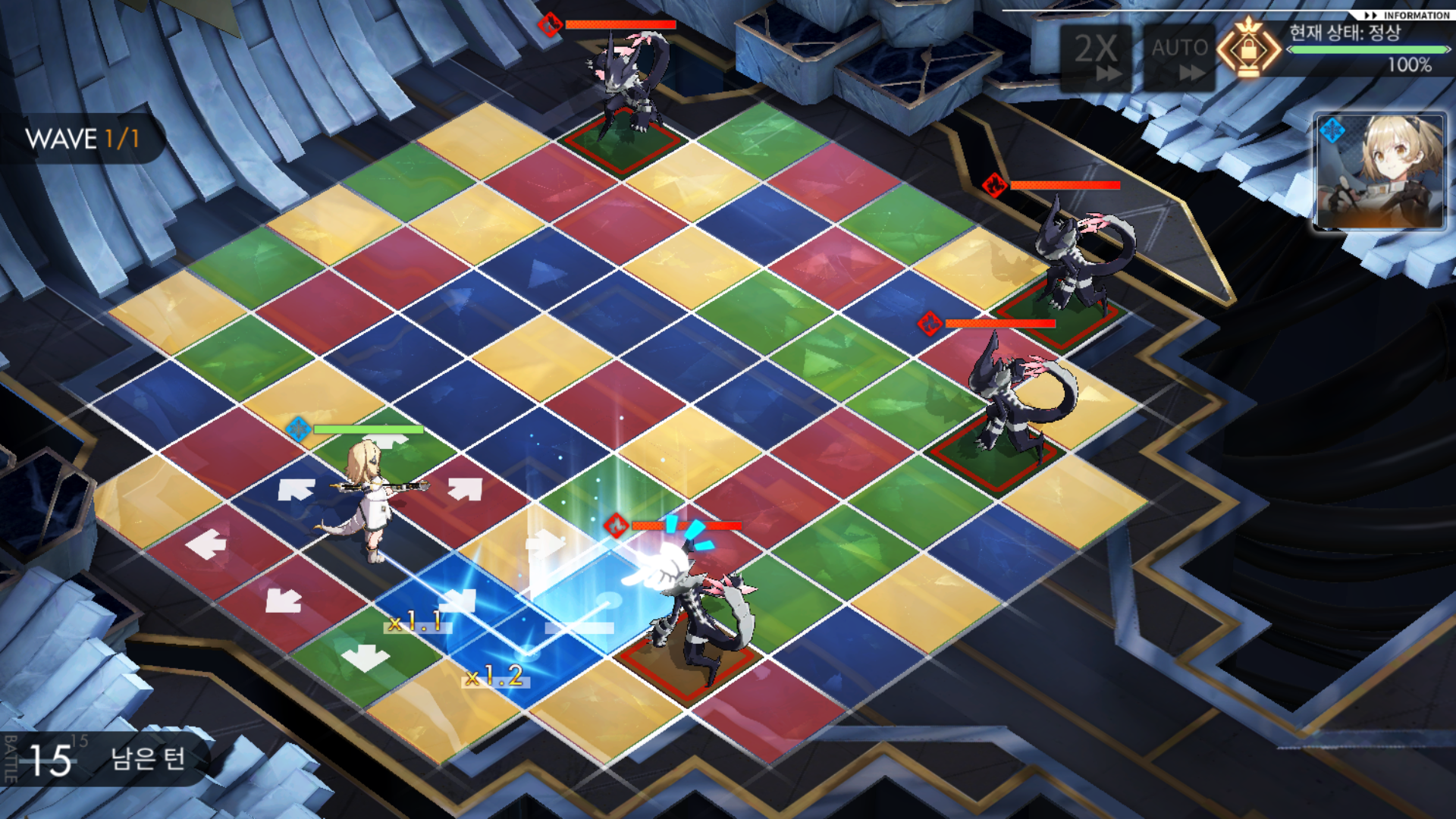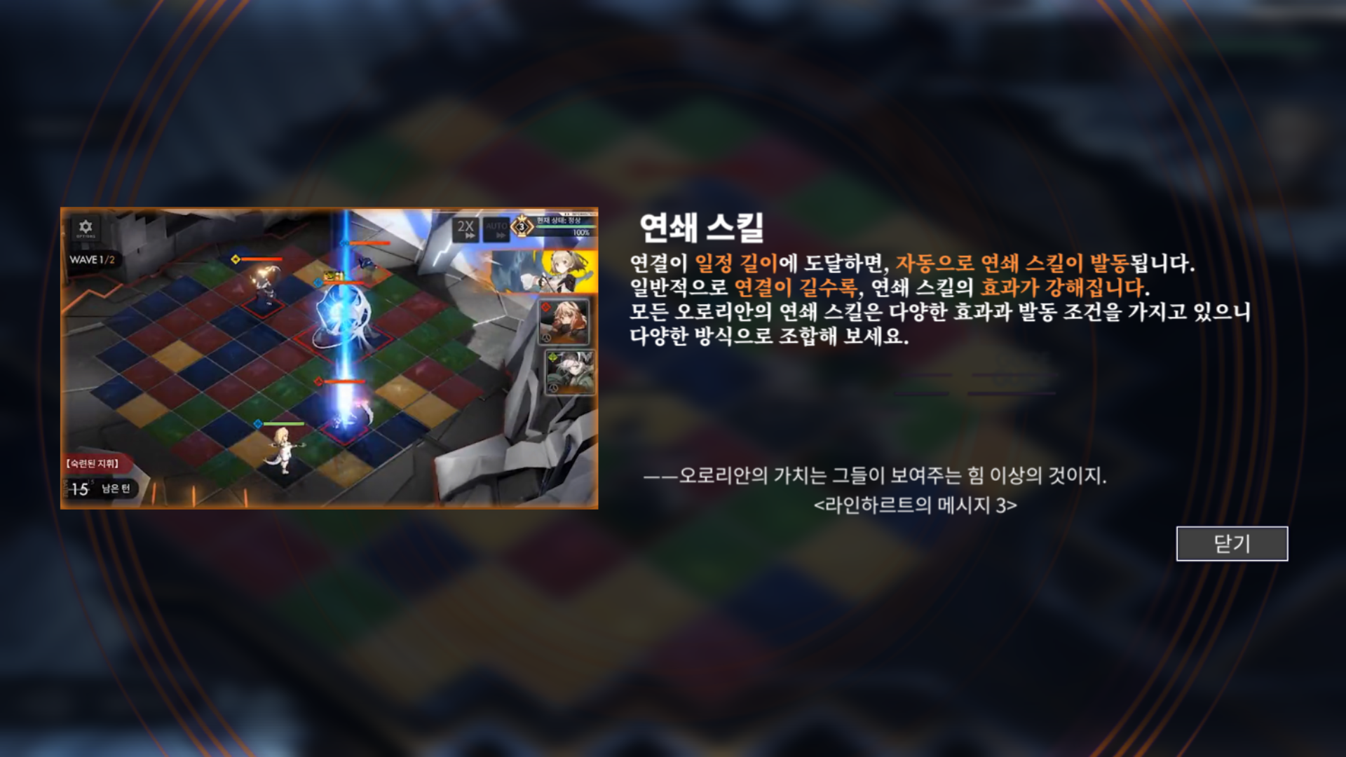 메인으로 움직이는 오로리안을 제외하고 파티에 속한 오로리안은 자신의 속성에 맞는 타일 이동시 함께 공격하기 때문에 파티 구성도 중요한 요소입니다.