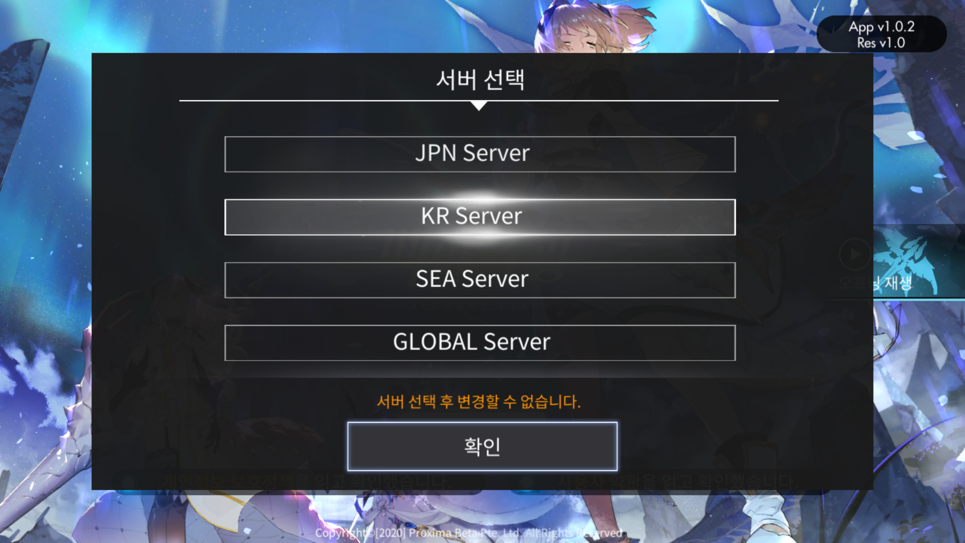 우선 서버는 일본, 한국, 동남아, 글로벌이 있네요. 저는 한국이니까 KR 서버 하겠습니다.