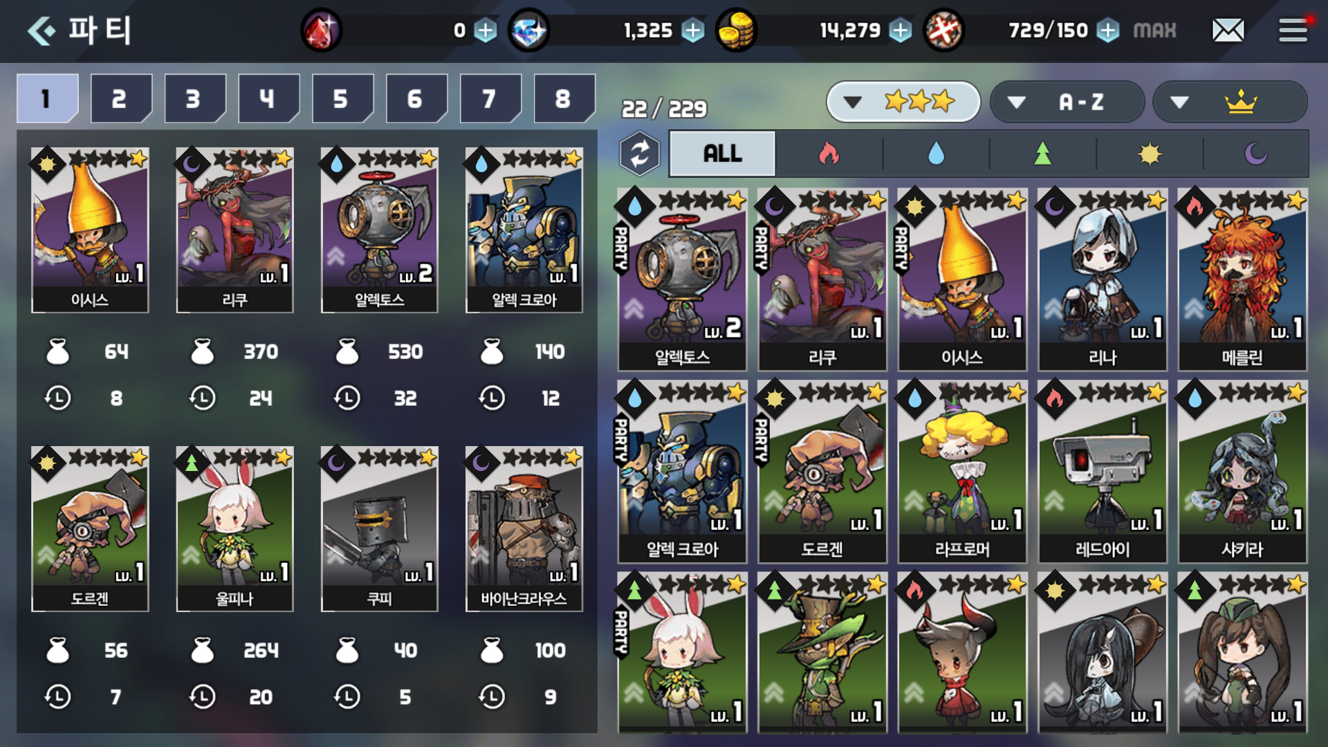 그런데 스테이지를 진행하면서 얻은 유닛과 뽑기로 얻은 유닛으로 전투를 하면서 보니 기본적으로 유닛들이 뭔가 여러 디자이너들이 각자 하나씩 캐릭터를 만들어와서 합친 것처럼 다 따로 노는 느낌이에요.