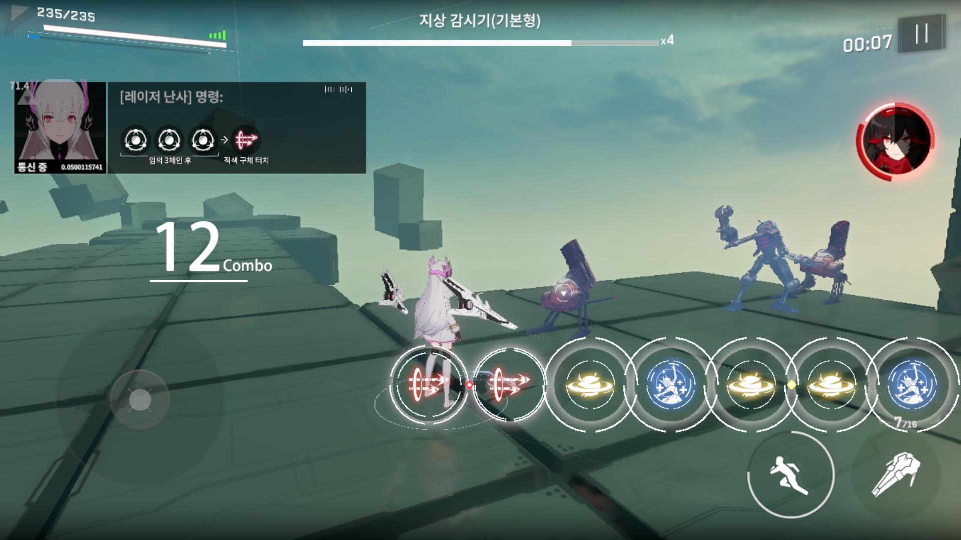 적의 공격을 아슬아슬하게 피하면 적이 느려지는 '초산 공간'에 진입하게 되는데 첫 스킬을 무조건 3 체인으로 인정해줍니다.