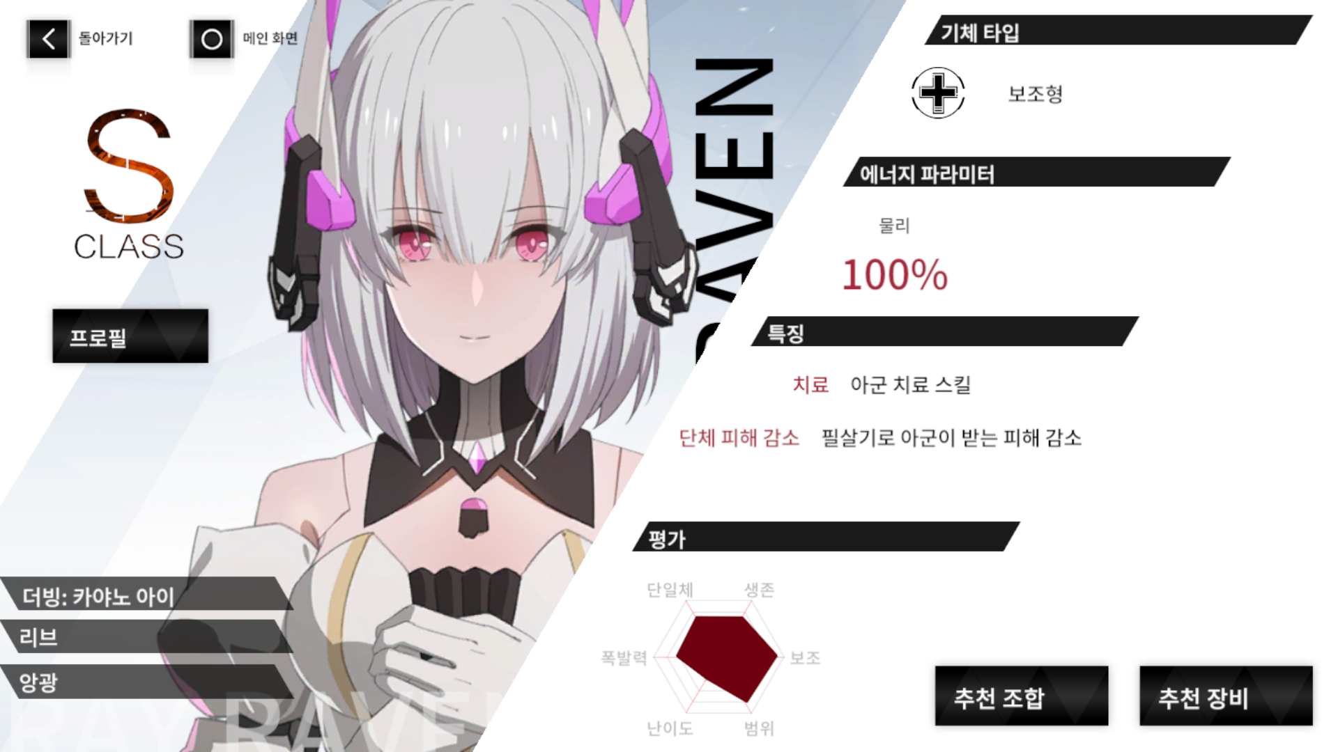 두 번째 구조체 리브입니다. 힐러인데, 그런데 리브는 B등급에도 있고, A등급도 있고, 이게 B등급도 S등급으로 만들 수 있다 보니 태생 S가 꼭 필요한가 싶습니다. 성능 차이가 나긴 하겠는데 얼마나 나는지 가늠이 안 됩니다.