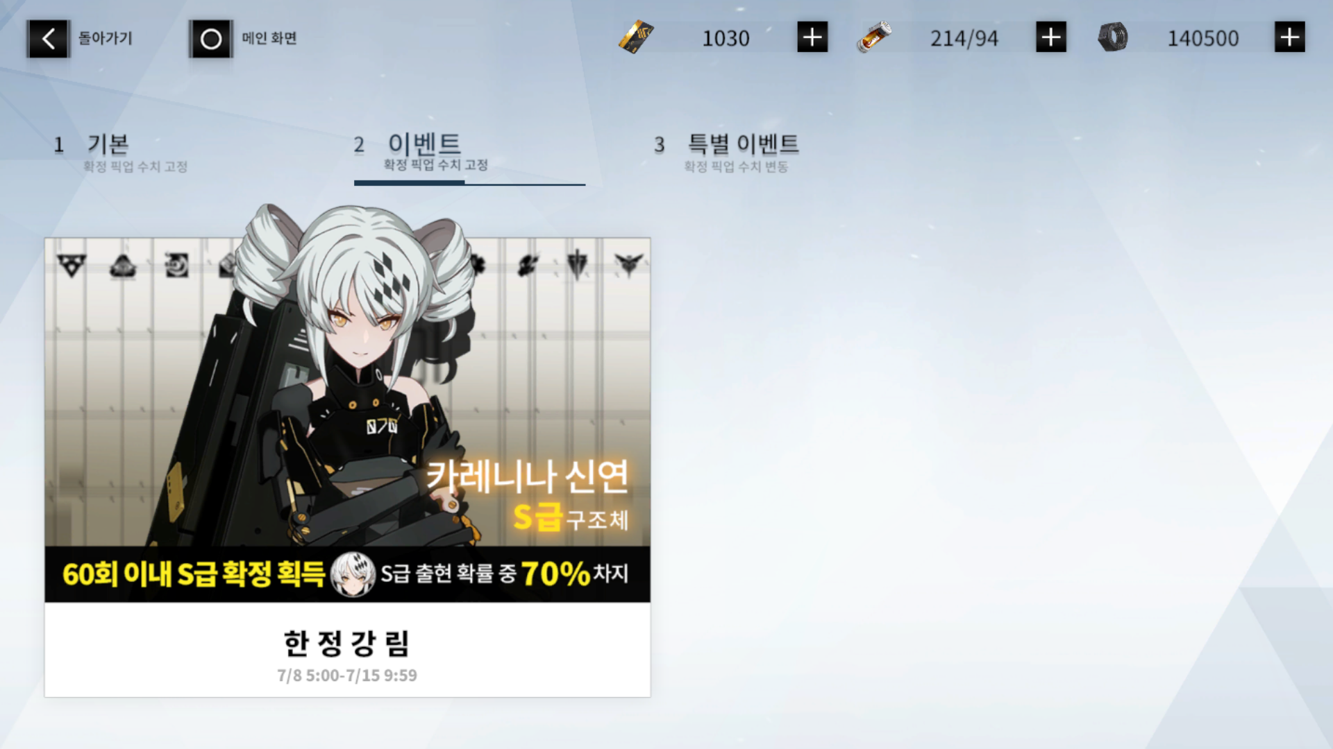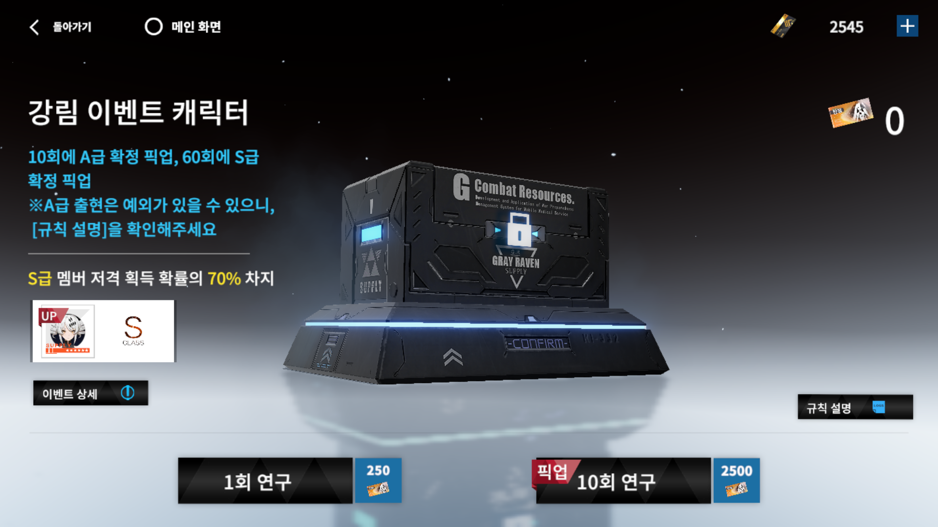 현재 픽업 중인 S급 캐릭터입니다. 여기서는 구조체라고 하네요.