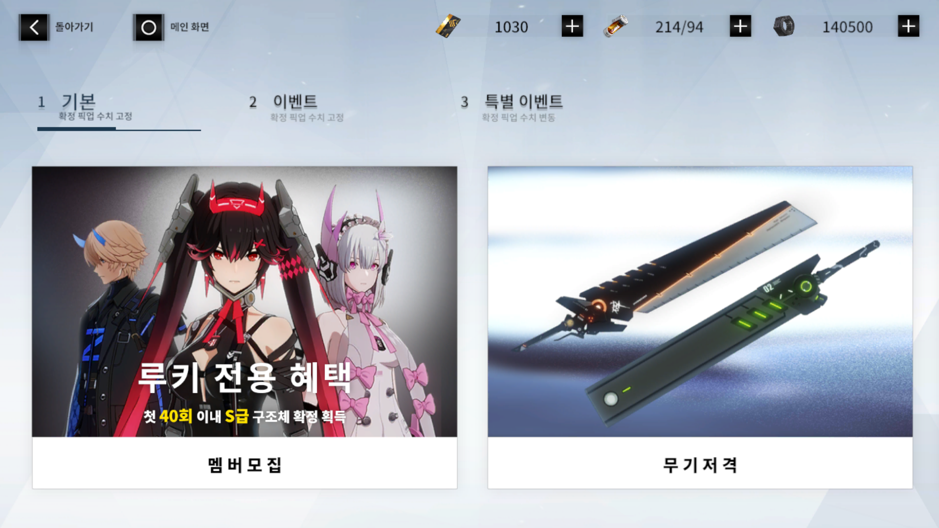 게임을 진행하다 보니 이제 2500 블랙 카드를 모아서 픽업 뽑기도 한 번 해봤습니다.