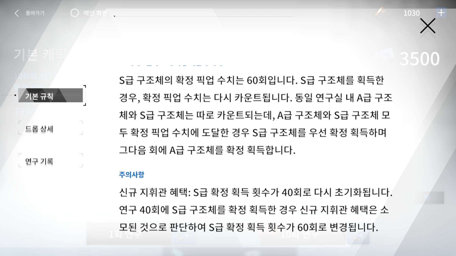 A급 확정 획득과 S급 확정 획득의 수치가 겹치면 S급을 획득하고 이후 A급을 획득한다고 합니다. 그리고 S급을 획득하면 60회로 변경된다고 쓰여있네요.