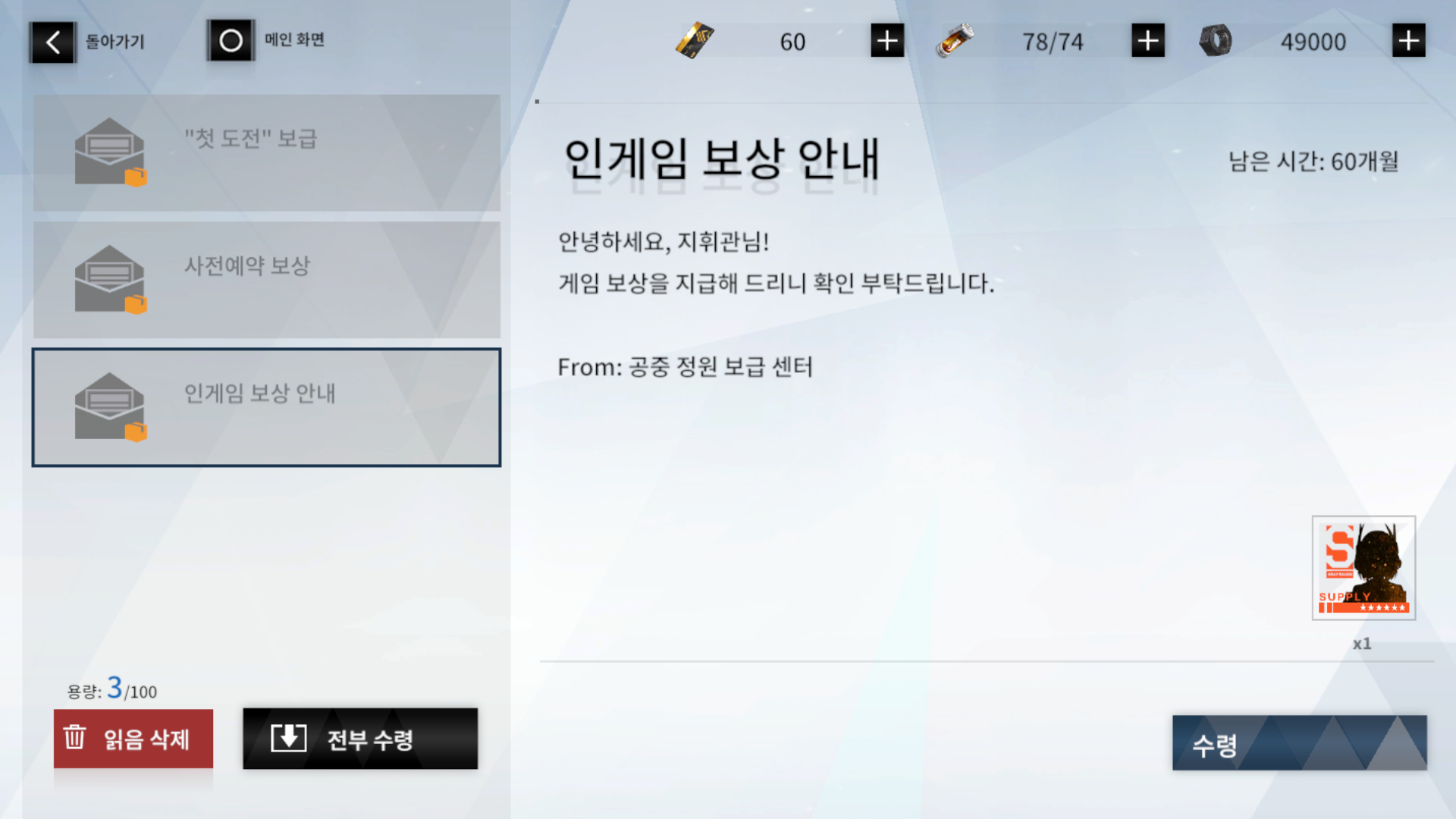 사전 예약 보상입니다.