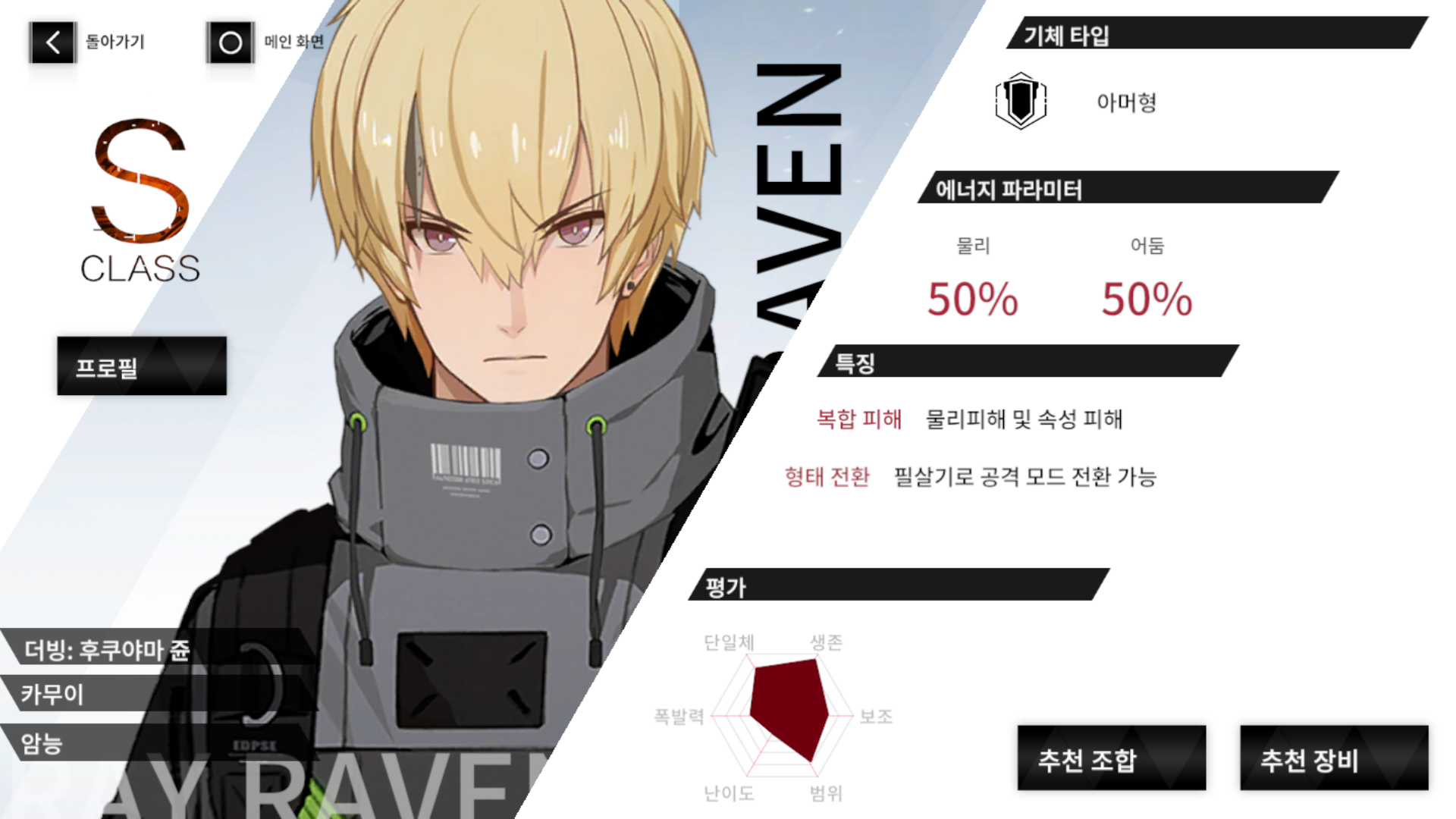세 번째 구조체 카무이입니다. 탱커인데 필살기를 사용하면 공격 모드로 전환이 가능하다네요.