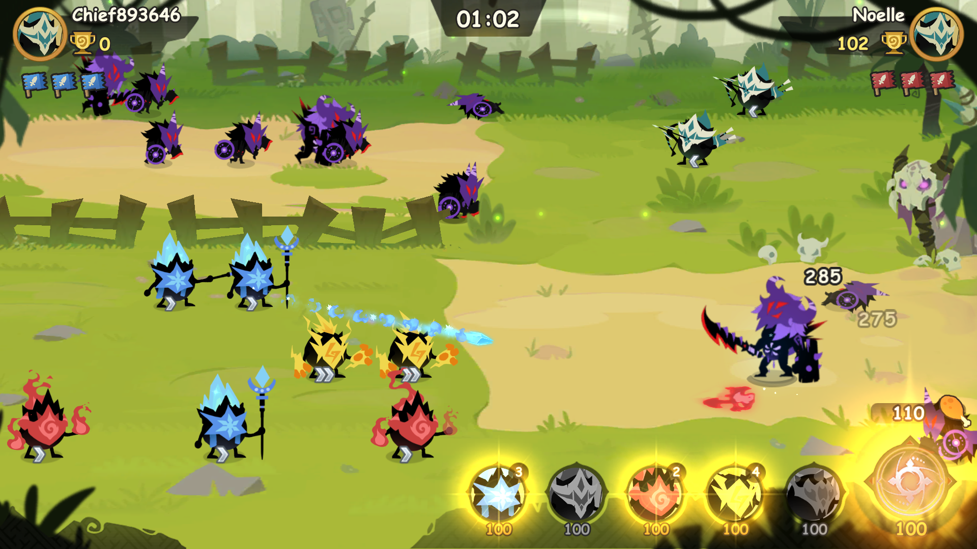 그리고 유닛을 생산하고 강화해서 몰려오는 적을 막아서 상대보다 오래 버티면 이기는 게임이에요.