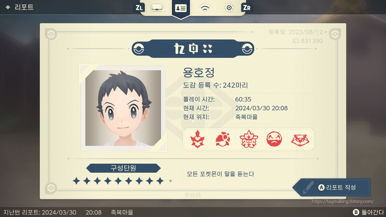 오른쪽 위에 등록일을 보니 게임을 23년 8월 12일날 처음 시작을 했나봐요. 그런데 도감을 완성한건 24년 3월 30일이네요.