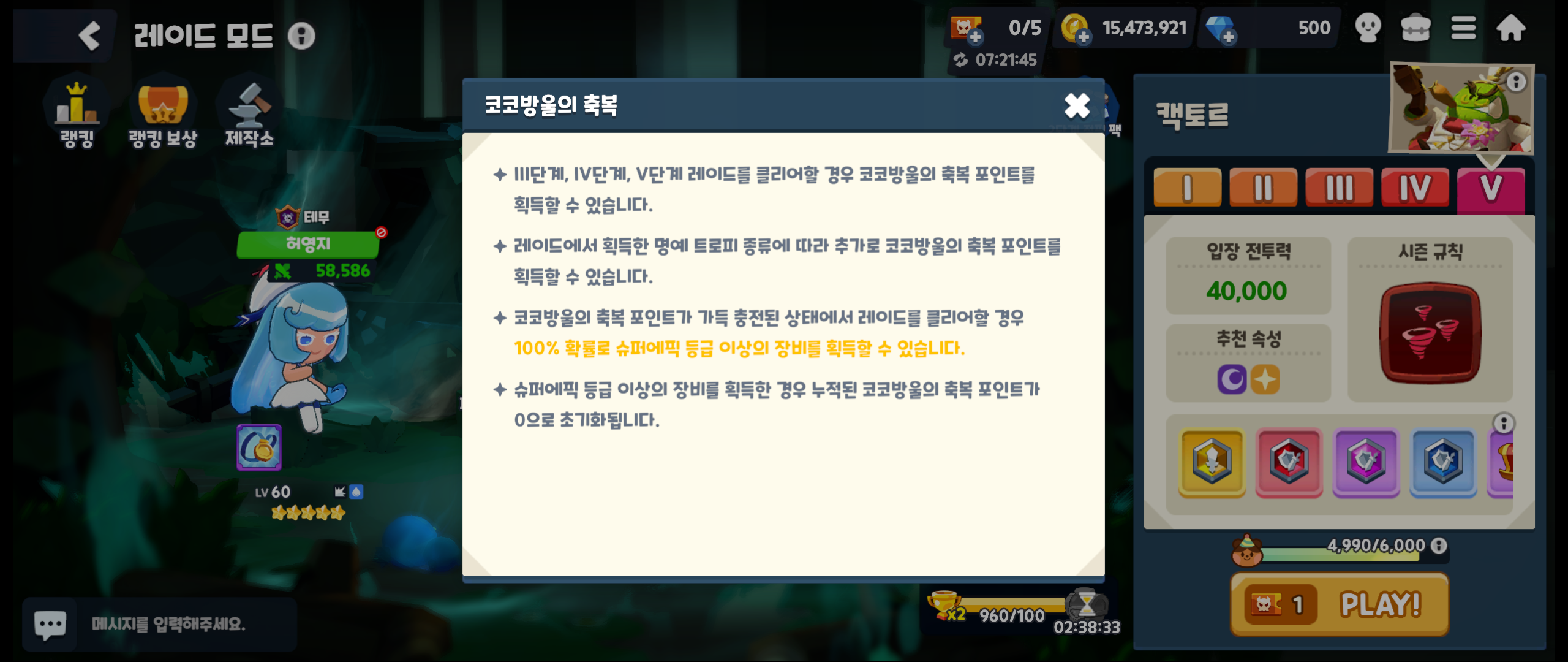 레이드 3, 4, 5단계 클리어 시 각 60, 100, 120 포인트를 지급합니다.
