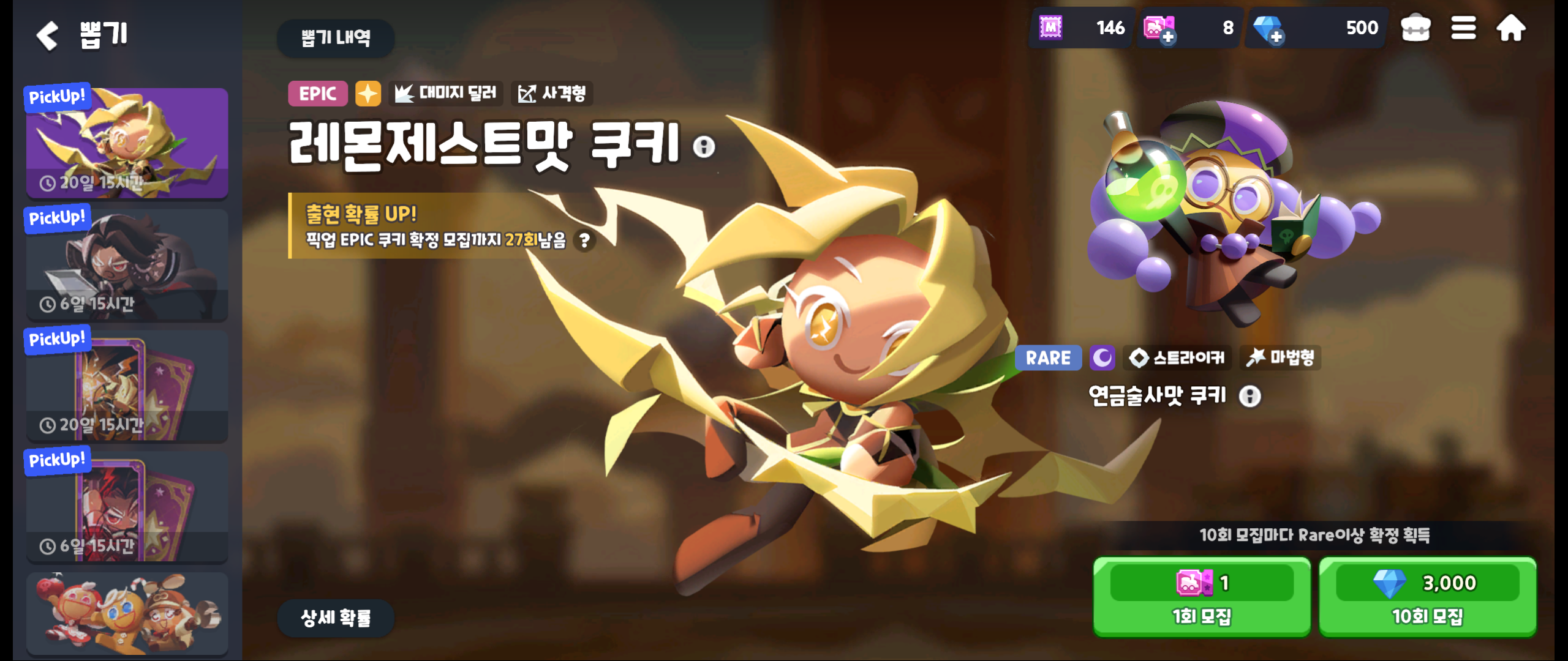 다음 픽업 쿠키가 10회만 뽑으면 확정 뽑기가 가능하다는 얘긴데,